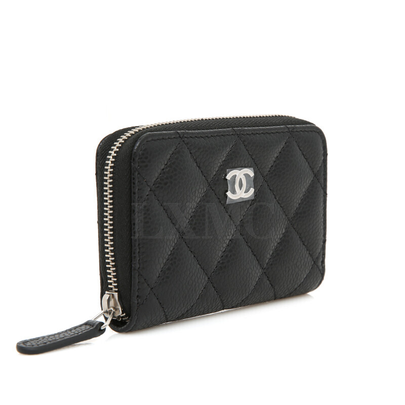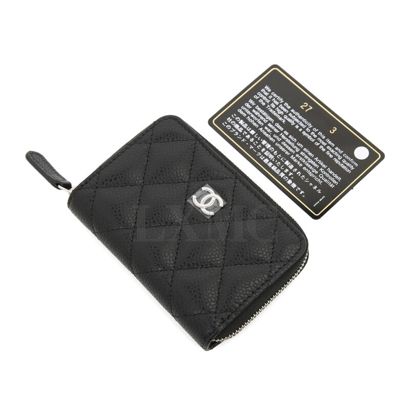 샤넬 클래식 캐비어 카드지갑 지퍼지갑 명함지갑 블랙 은장 AP0216.