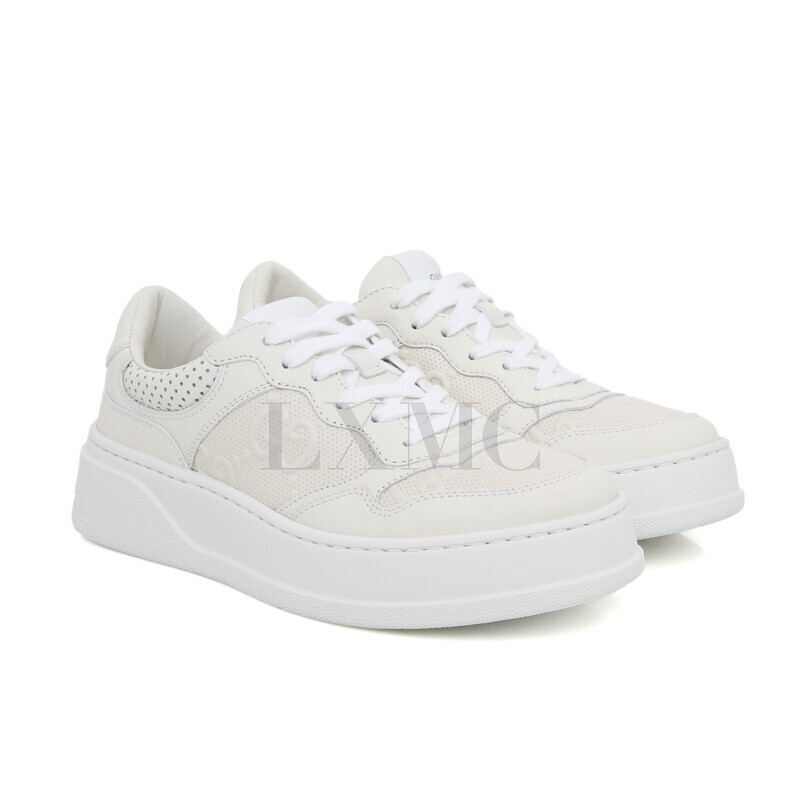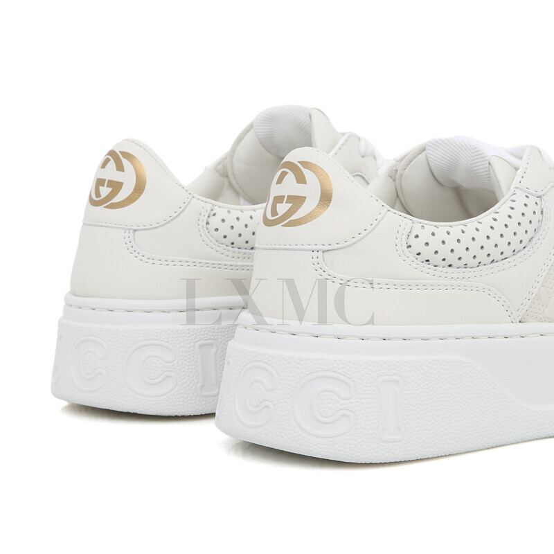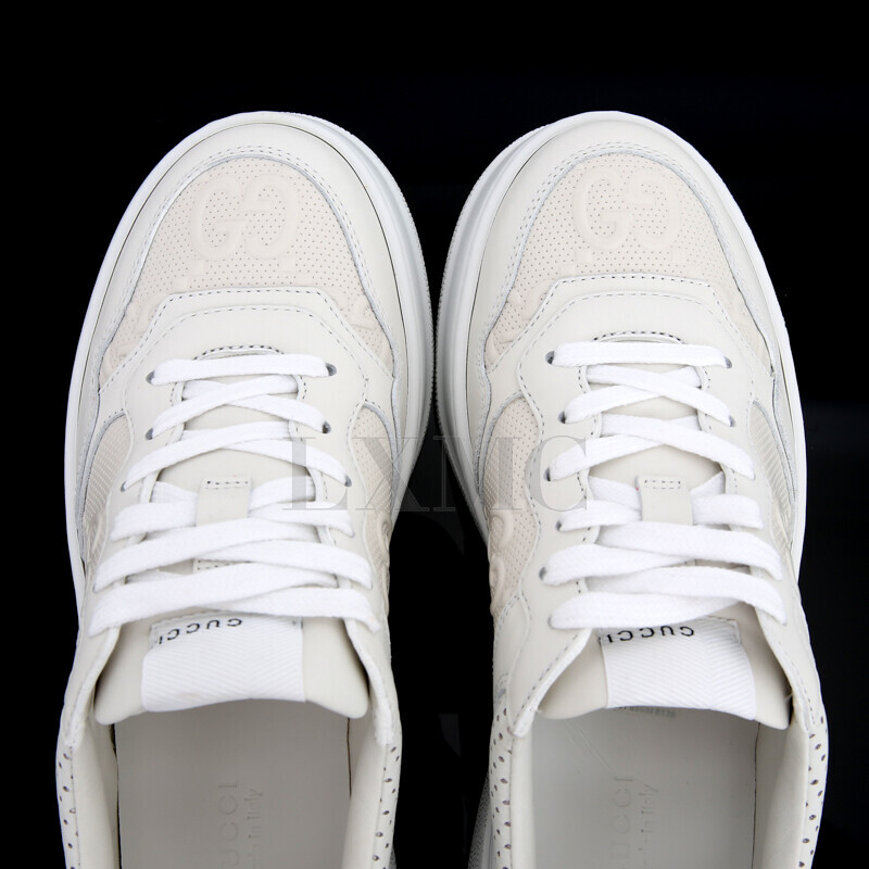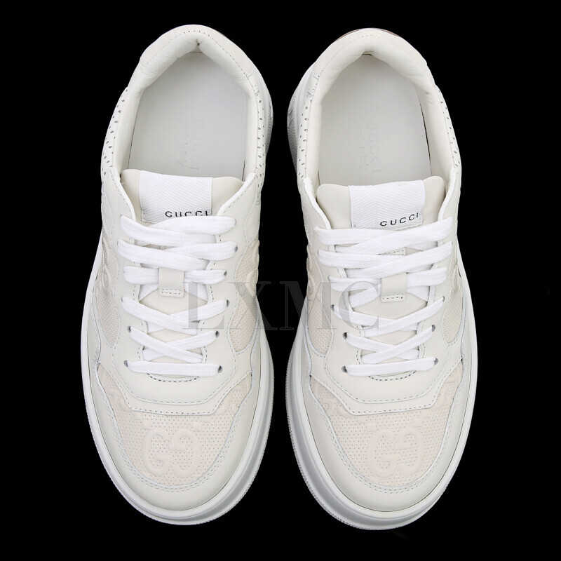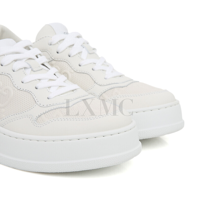 화이트 GG 엠보스 레더 및 부드러운 레더 디테일
