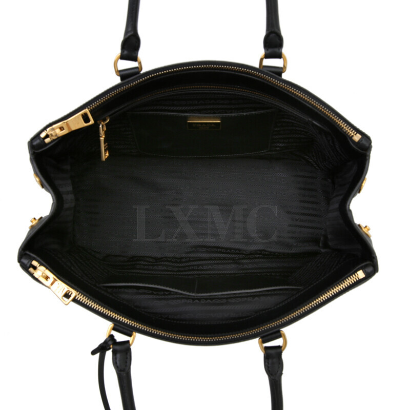 프라다 BN1786 사피아노 럭스 더블 지퍼 블랙 토트백 시티백.