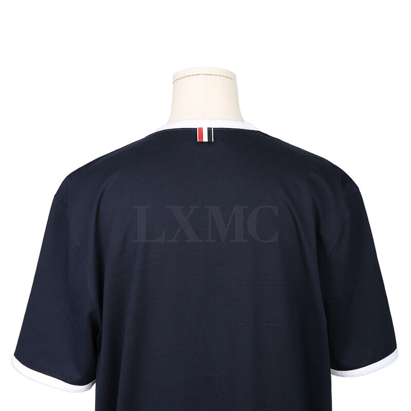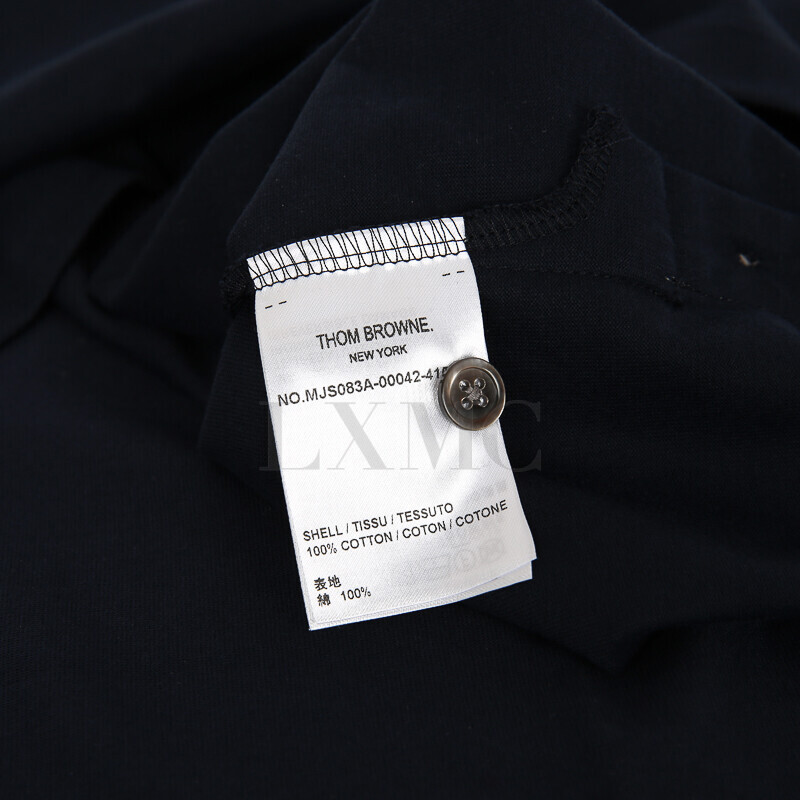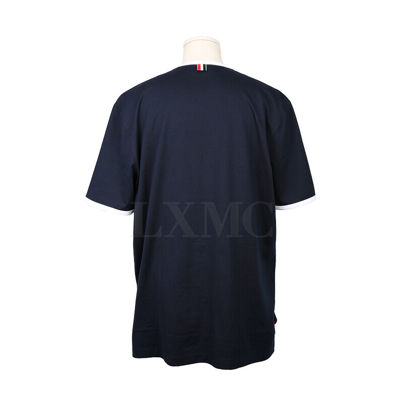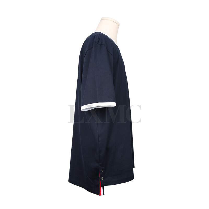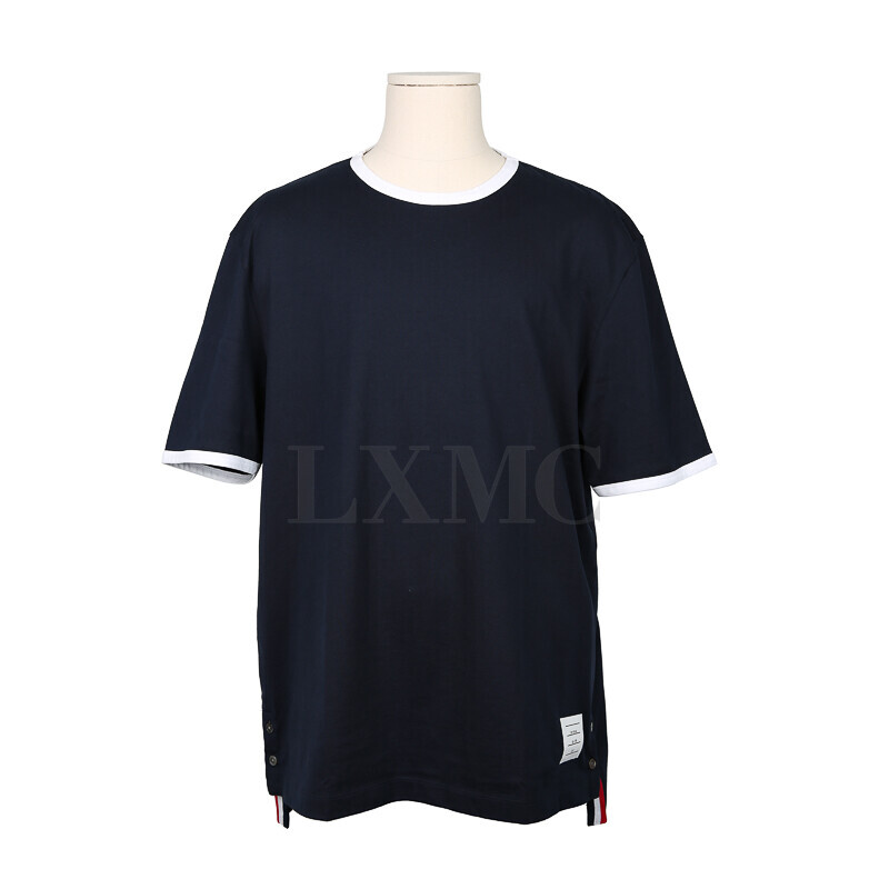 톰브라운 삼선 사이드 슬릿 링거 반팔티 네이비 티셔츠 MJS083A.