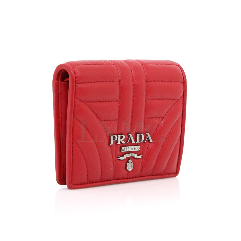 프라다 다이어그램 반지갑 1MV204 레드 실버 지갑.