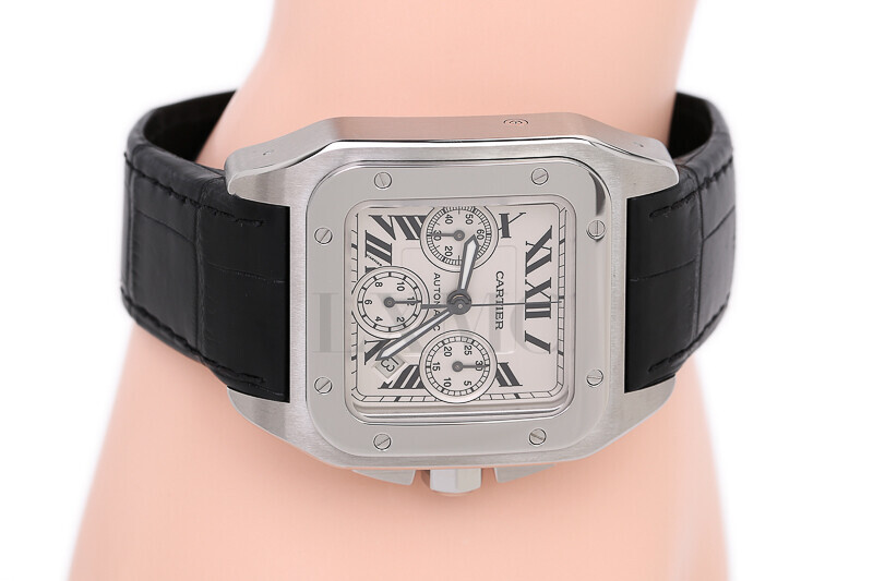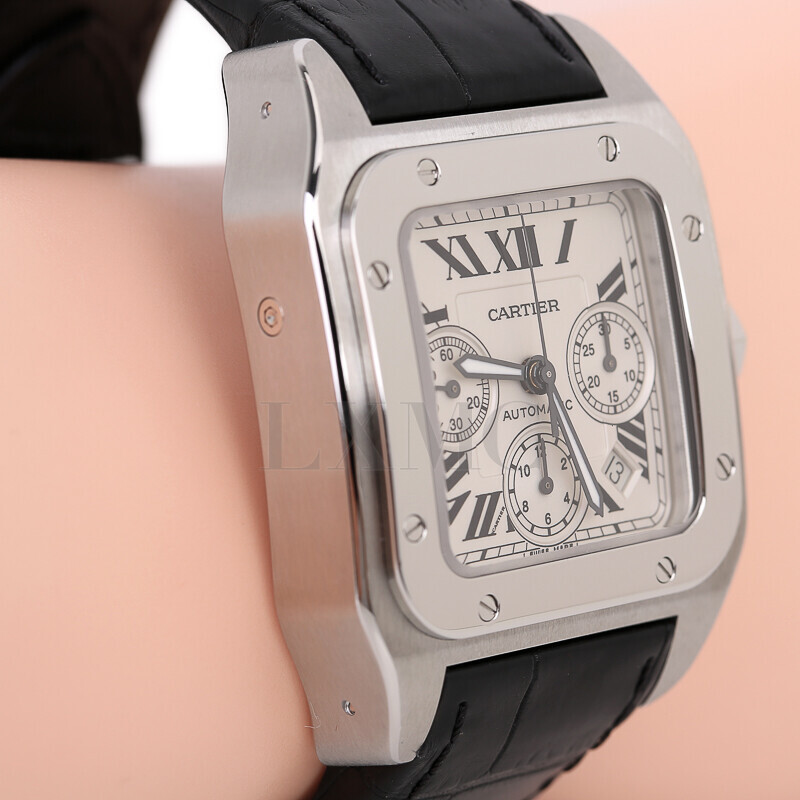 까르티에 한정판 산토스 100 XL 크로노 2740 스틸 오토매틱.