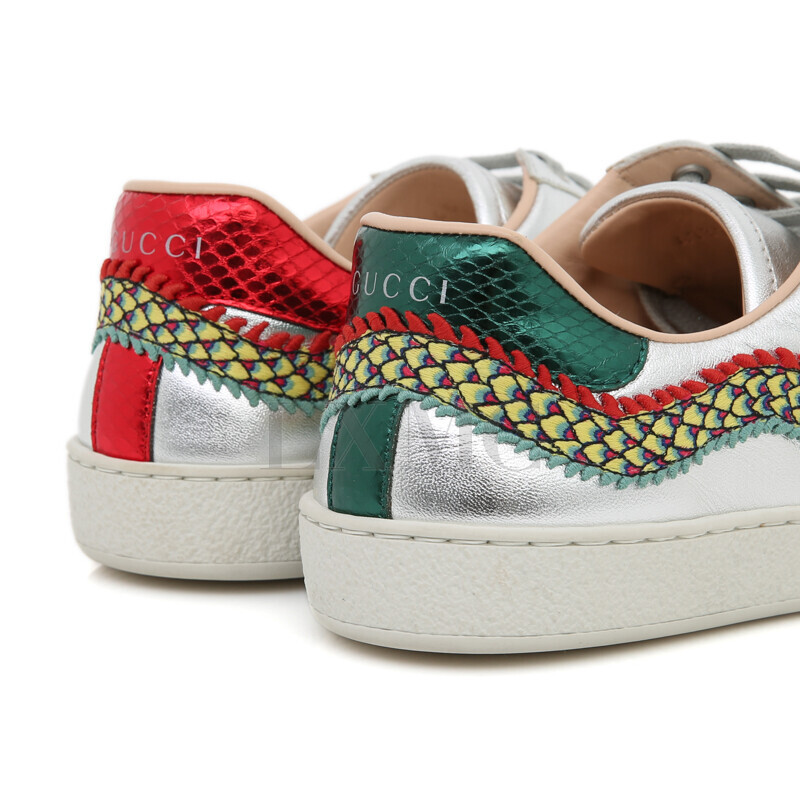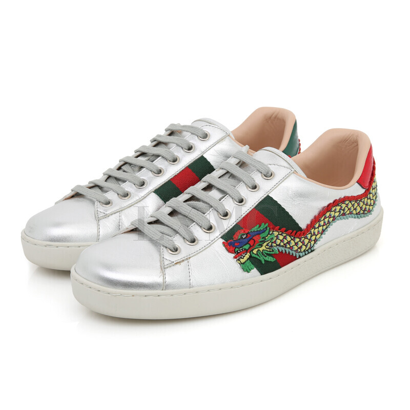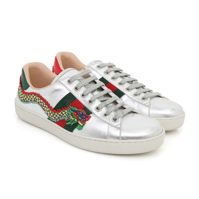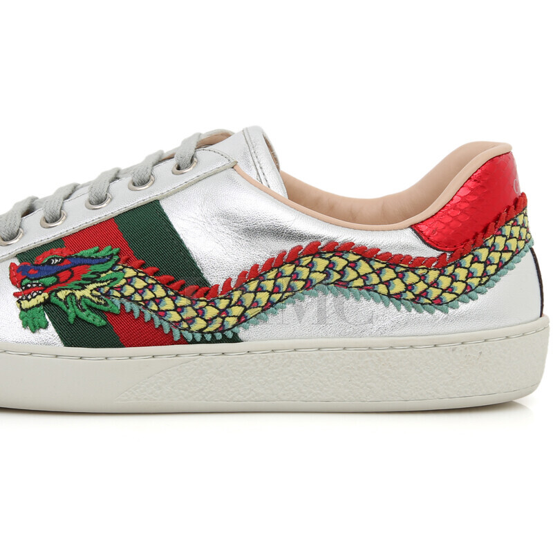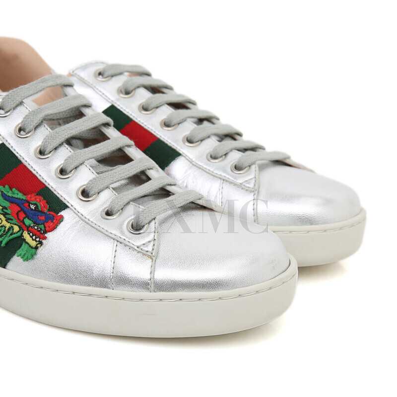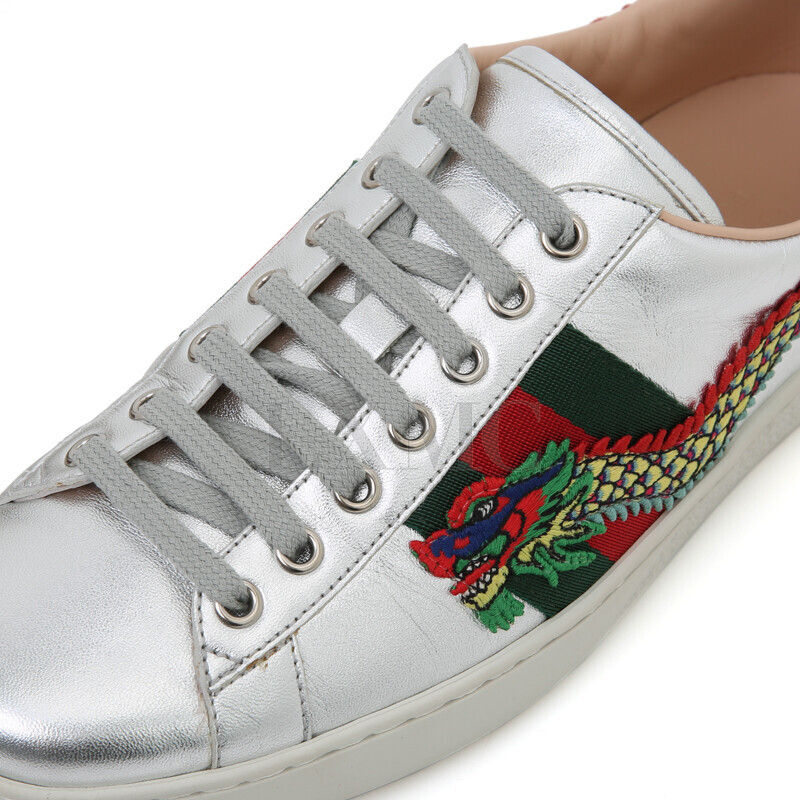 구찌 한정판 메탈릭 실버 에이스 드래곤 스니커즈 473765 슈즈.