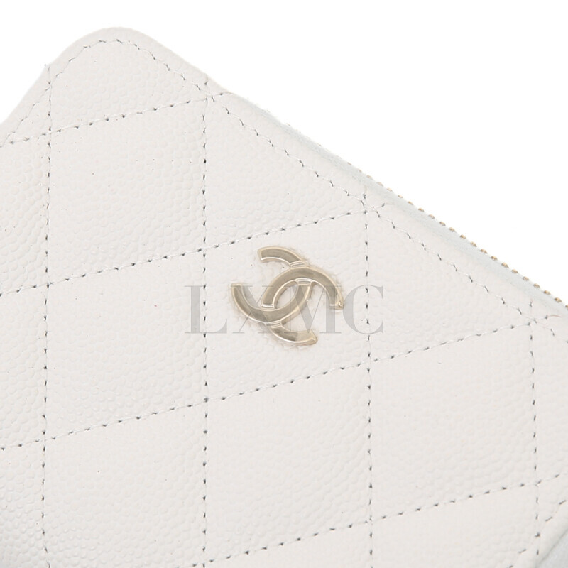 샤넬 클래식 캐비어 명함지갑 카드지갑 지퍼 오거나이저 미니지갑 화이트.