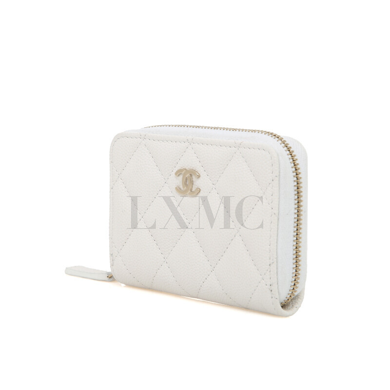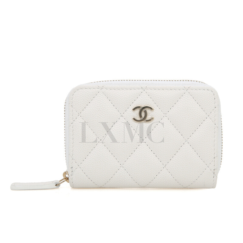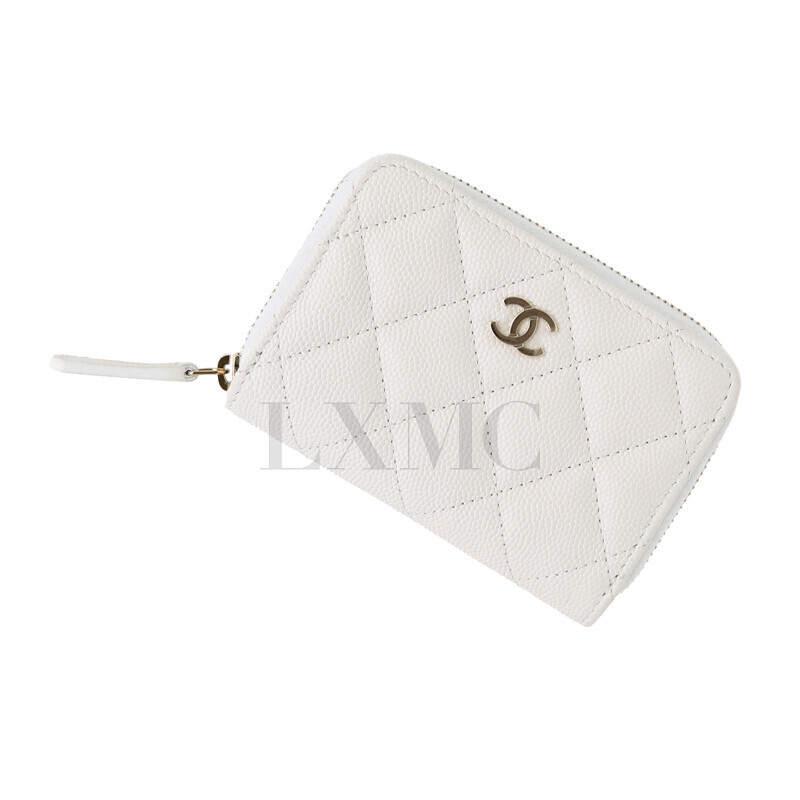 샤넬 클래식 캐비어 명함지갑 카드지갑 지퍼 오거나이저 미니지갑 화이트.