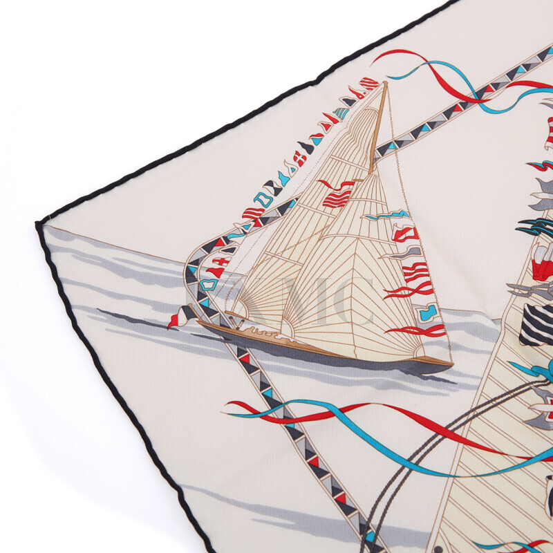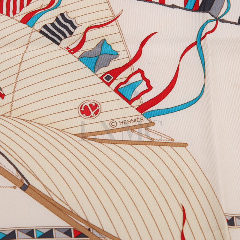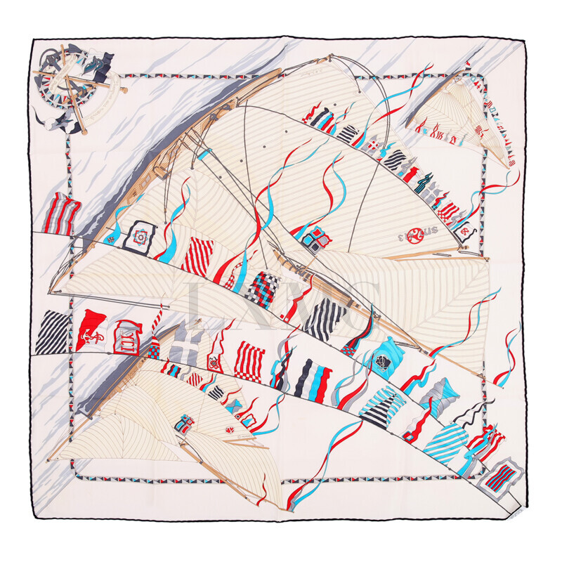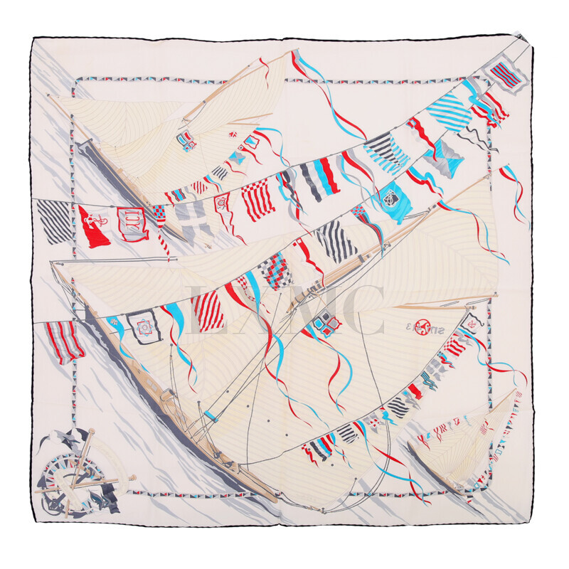 에르메스 실크 스카프 까레스카프 요트 배 베이지 스카프.