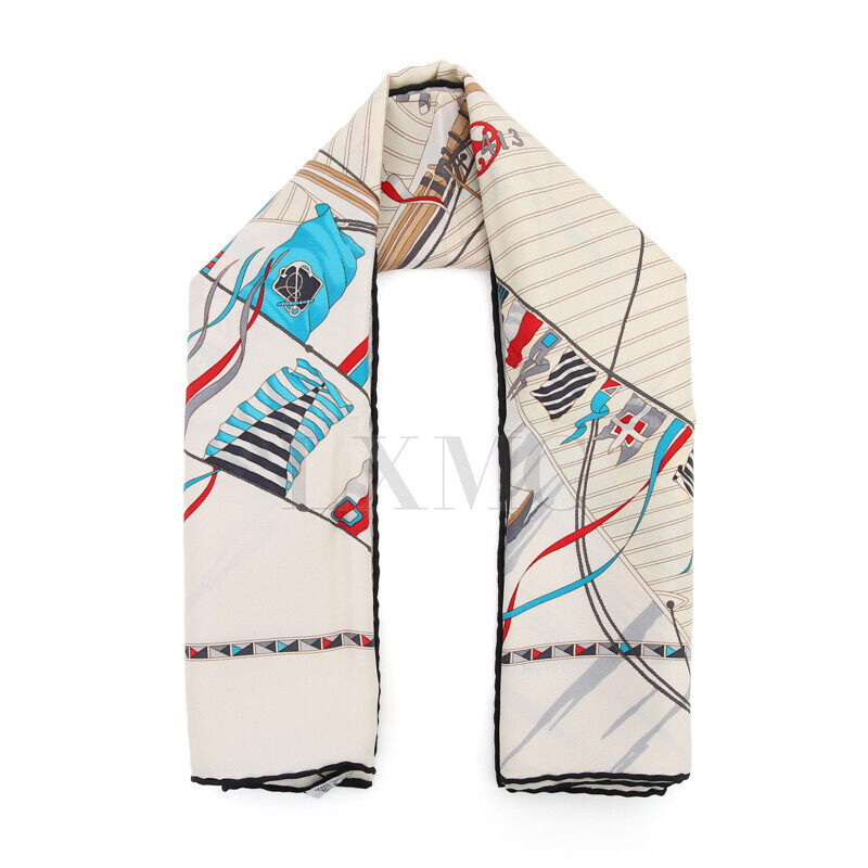 에르메스 실크 스카프 까레스카프 요트 배 베이지 스카프.