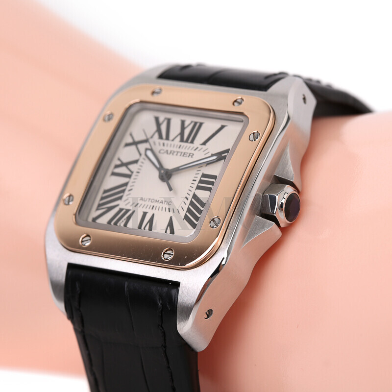 까르띠에 산토스 100 MM 콤비 워치 가죽시계 W20107X7 2878.