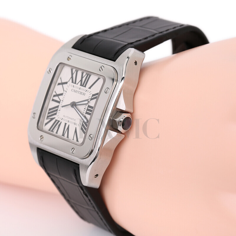 까르띠에 산토스 100 XL 워치 블랙 은장 가죽시계 W20073X8.