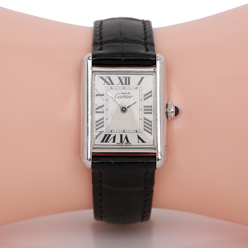 까르띠에 2000년 빈티지 머스트 탱크 실버 백금 2416 워치 시계.