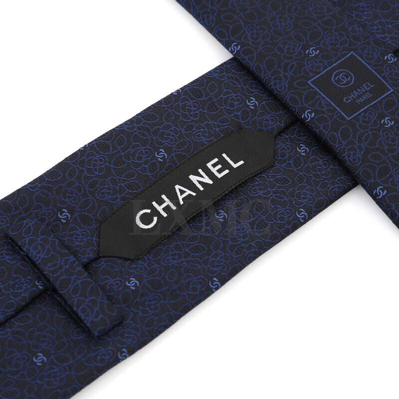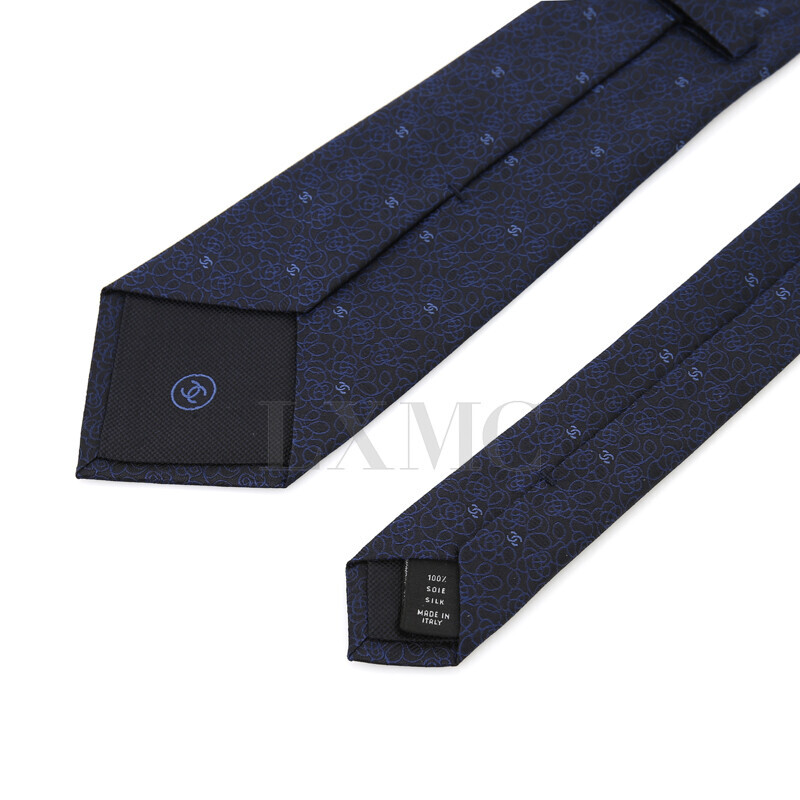 샤넬 블랙 블루 CC 로고 넥타이 까멜리아 타이 샤넬넥타이.