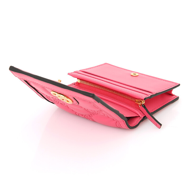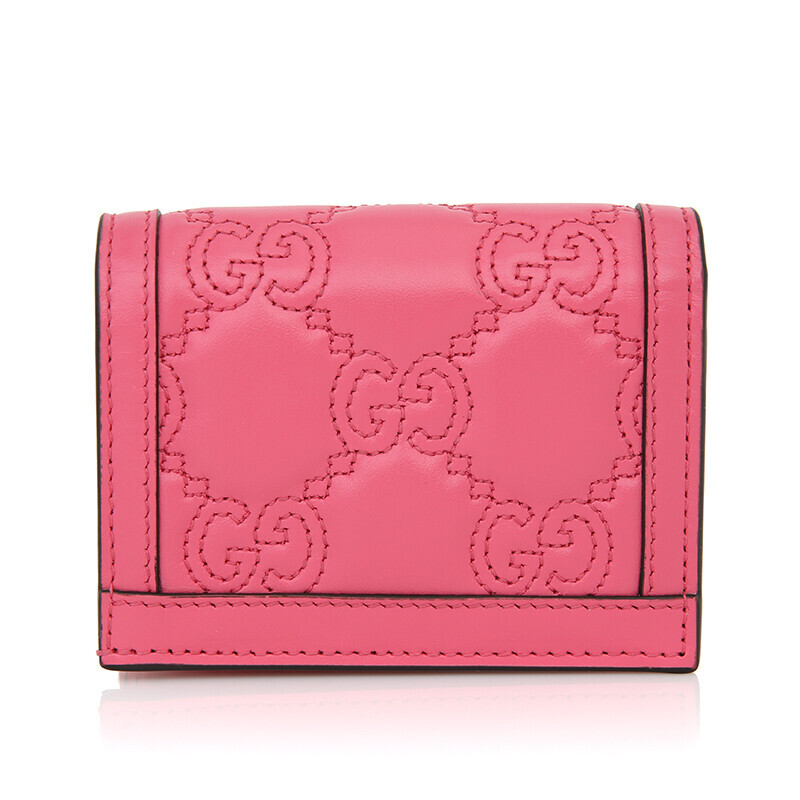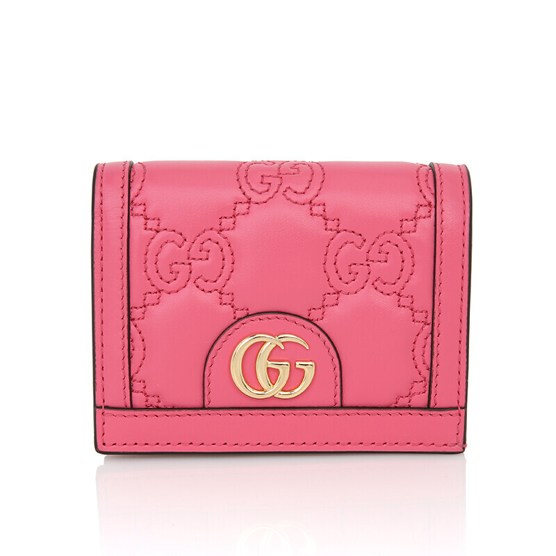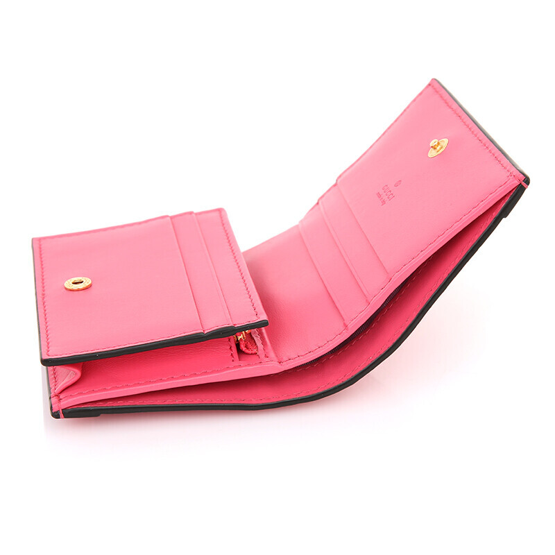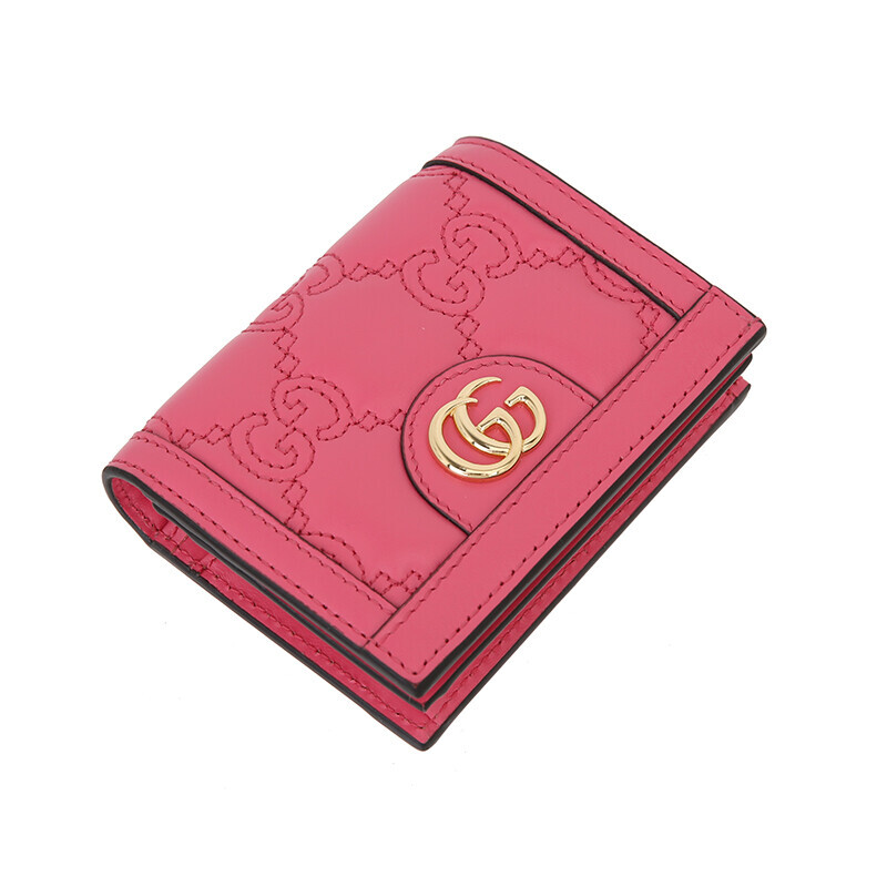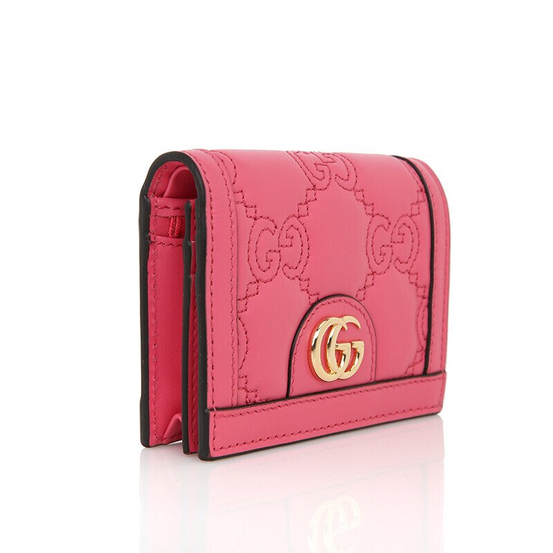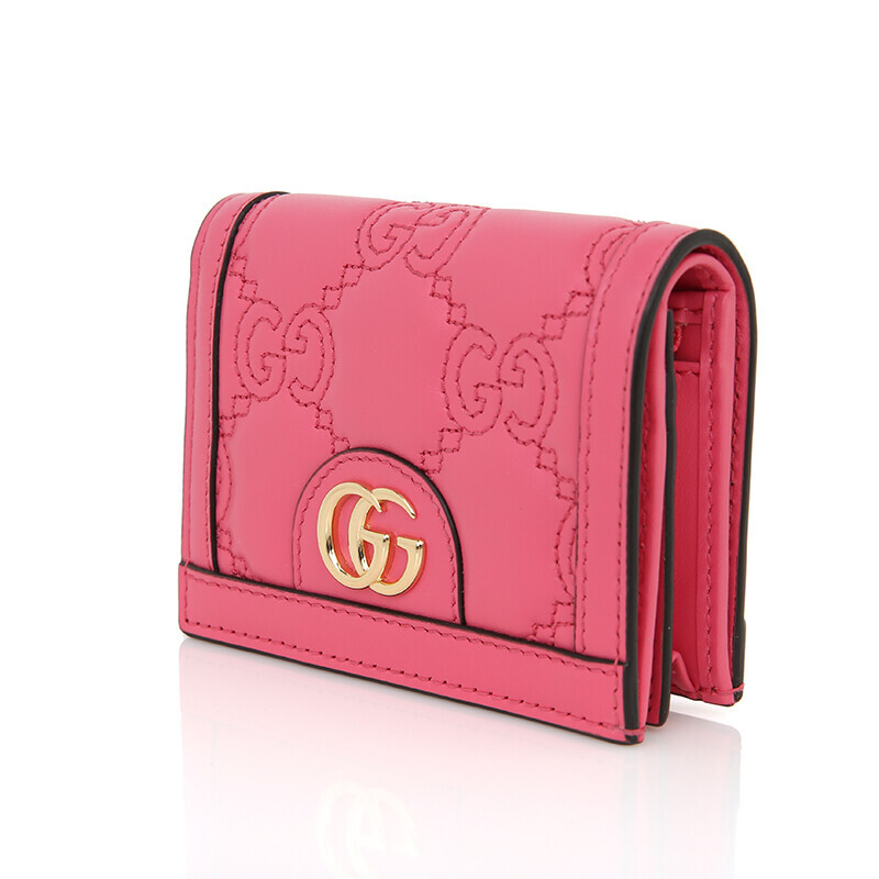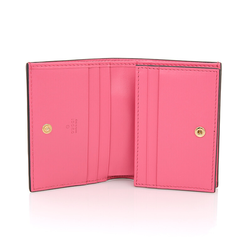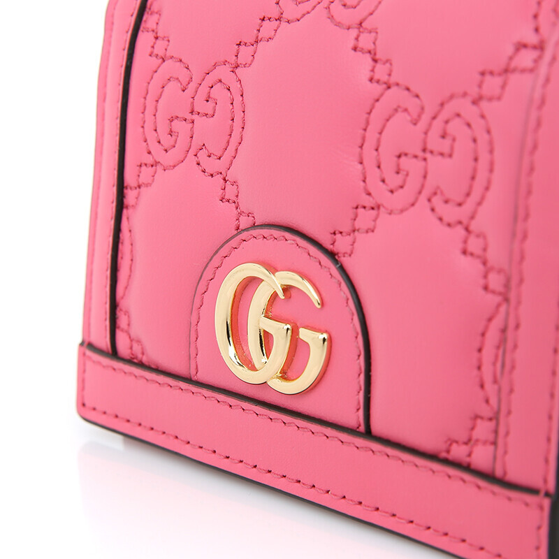 구찌 GG 마틀라세 플랩 카드 케이스 지갑 723786 핫핑크 금장.