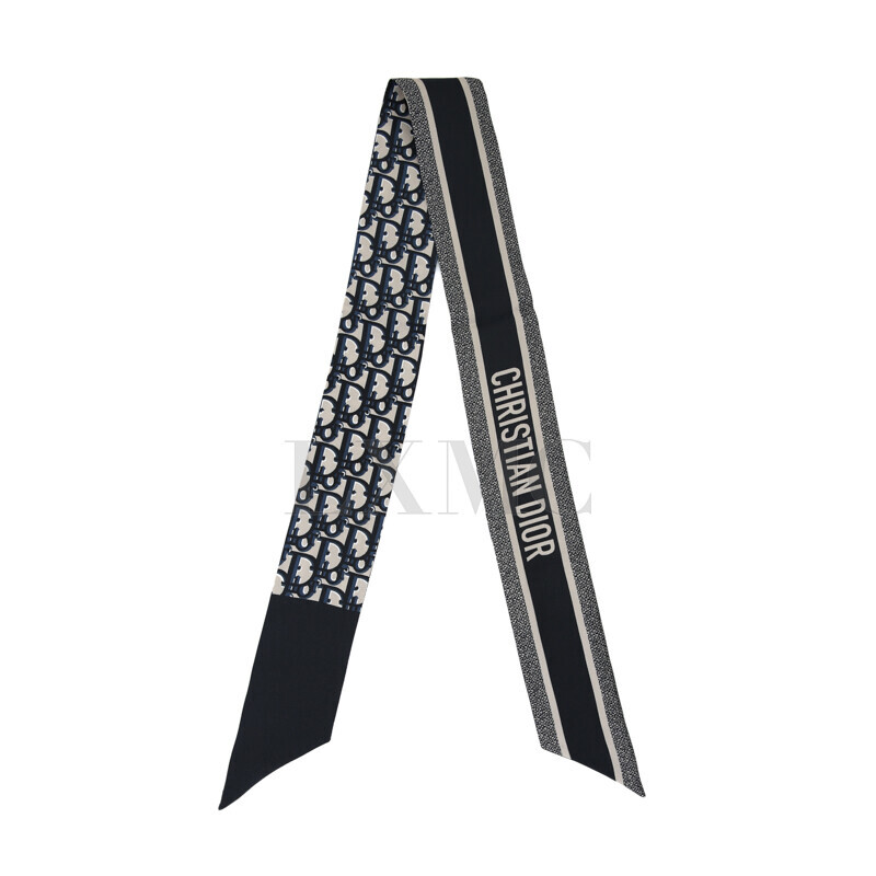디올 오블리크 DIOR OBLIQUE 미차 스카프 네이비 블루 실크 트윌 방도.