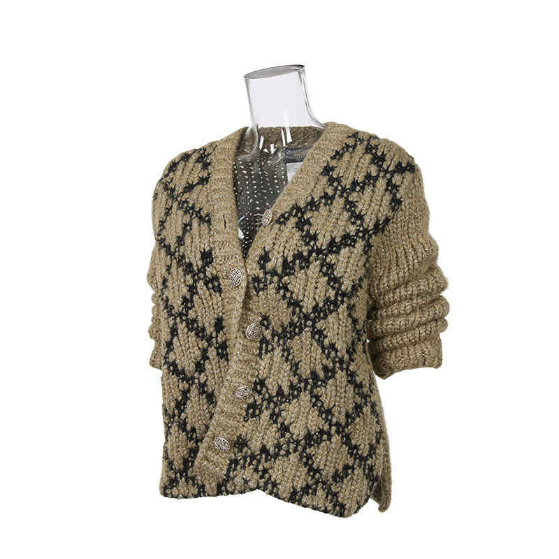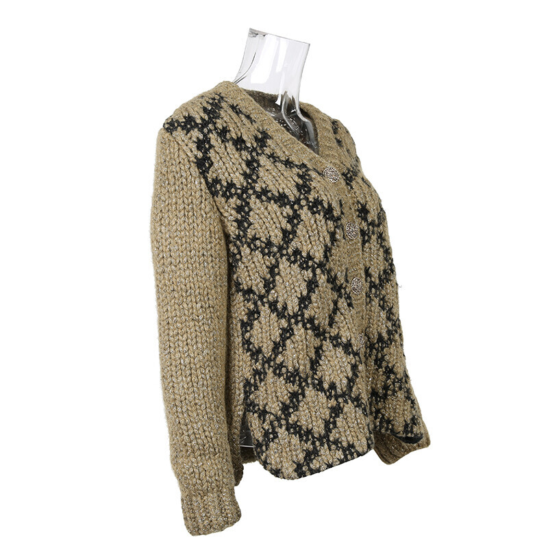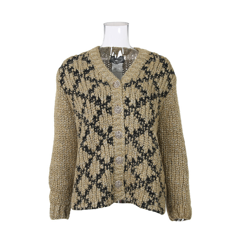 샤넬 골드 베이지 퀼팅 CC 로고 가디건 니트 자켓 P52863.