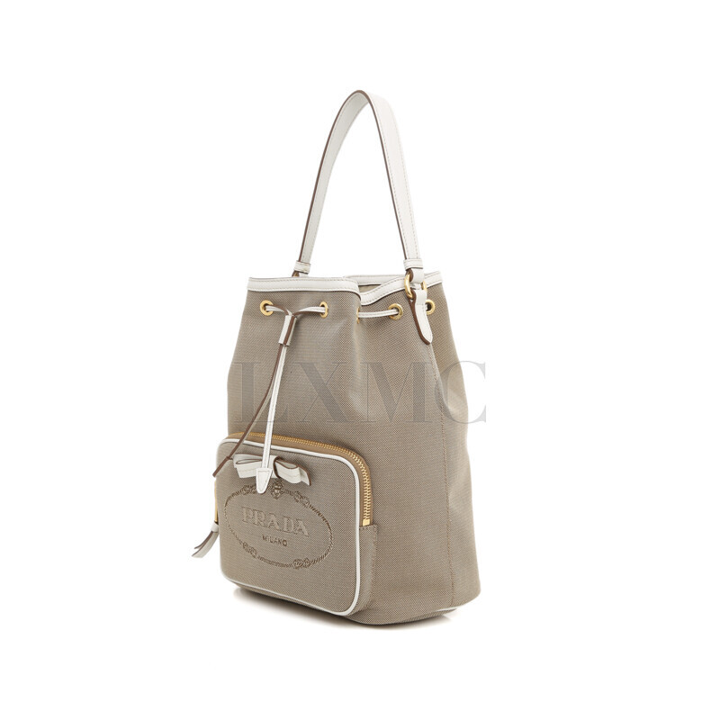 프라다 헤리티지 베이지 자카드 버킷백 1BH097 버켓 숄더백.