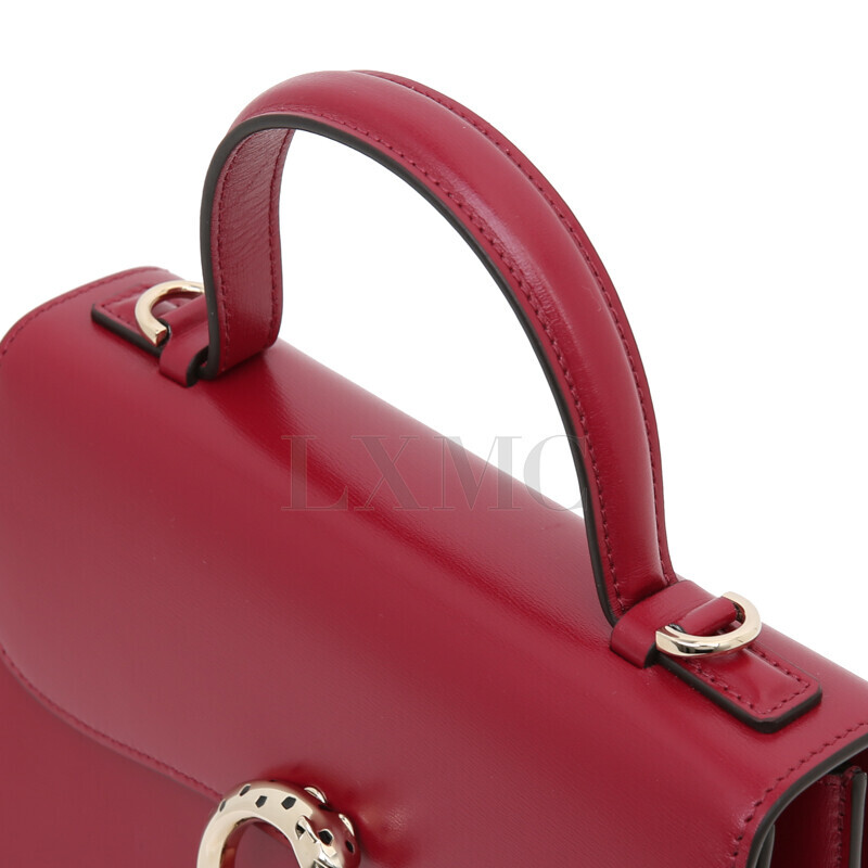 small 핸들 백, 체리 레드 송아지 가죽,