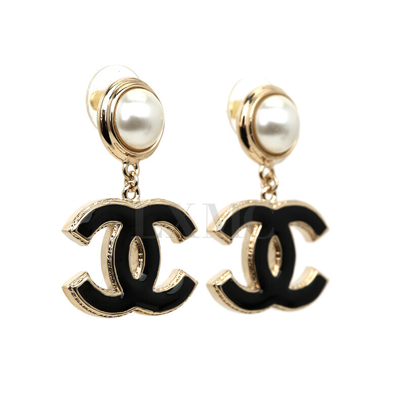 샤넬 2022 쇼라인 CC 블랙 로고 진주 이어링 골드 귀걸이 AB8688.