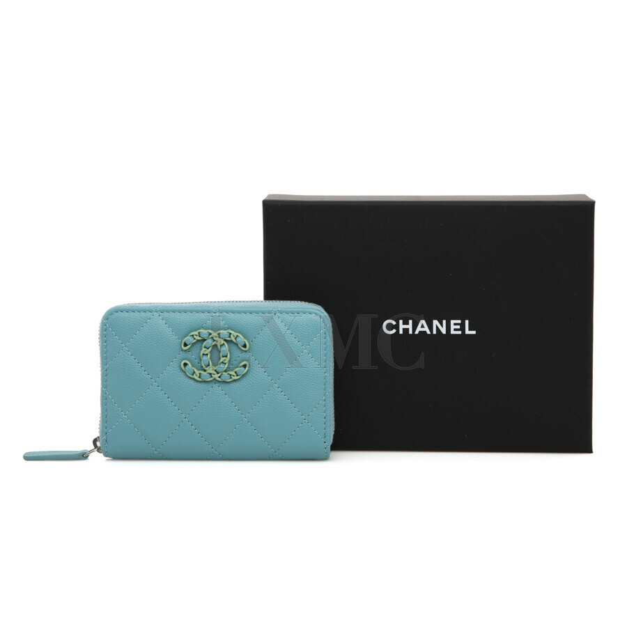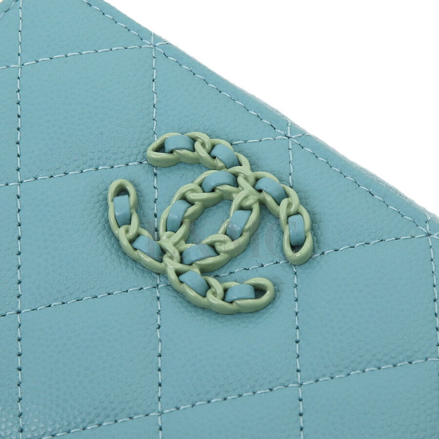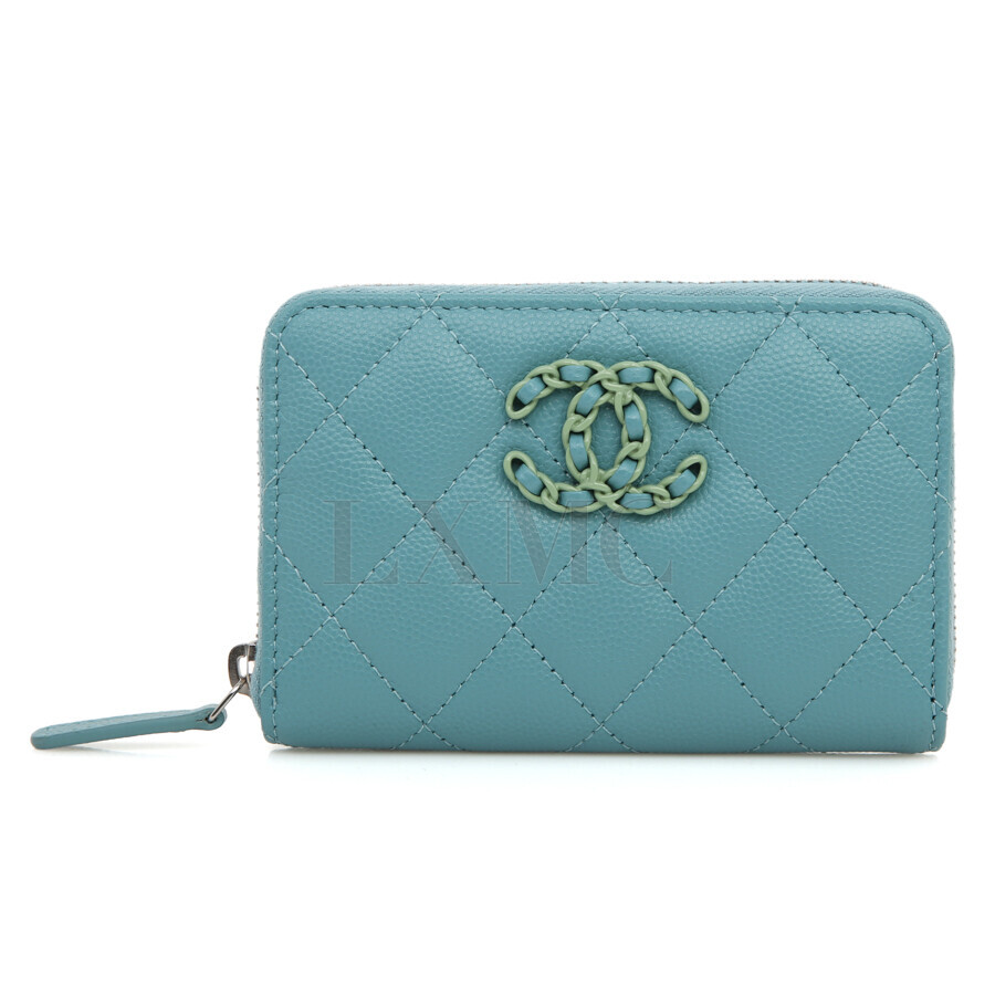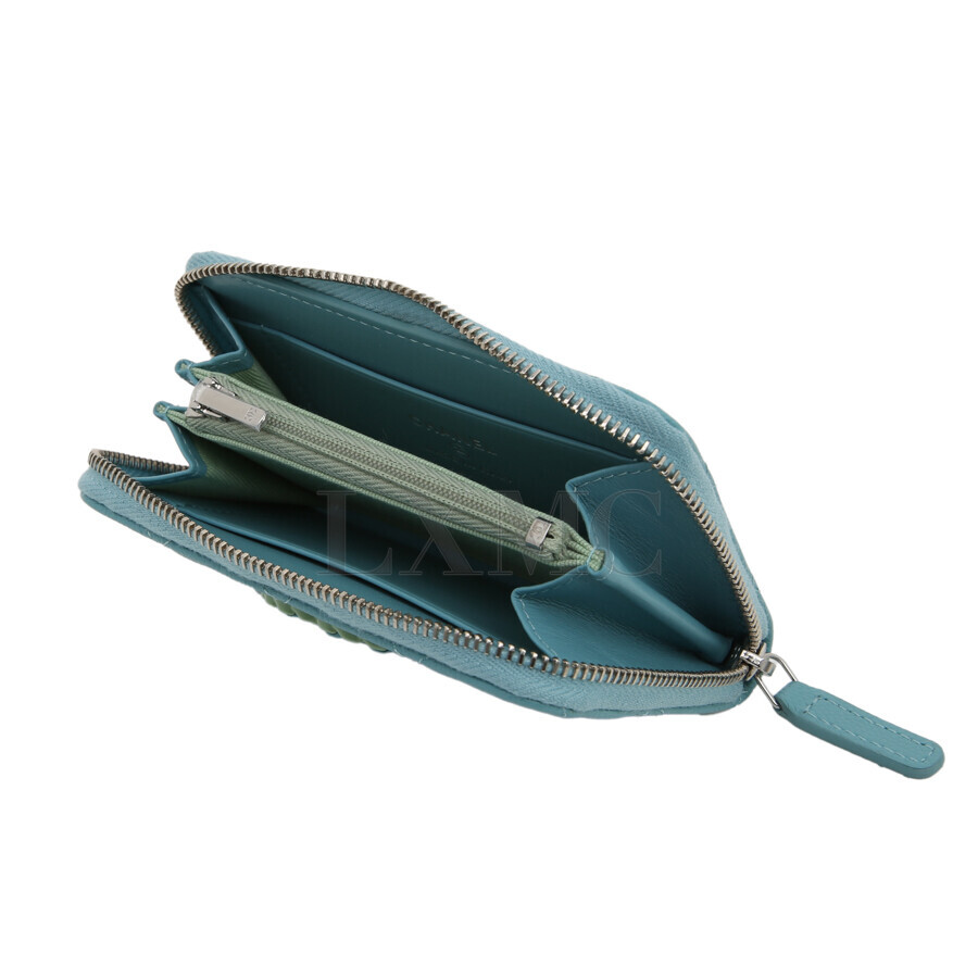 샤넬 클래식 캐비어 카드지갑 터콰이즈 CC 로고 지갑.