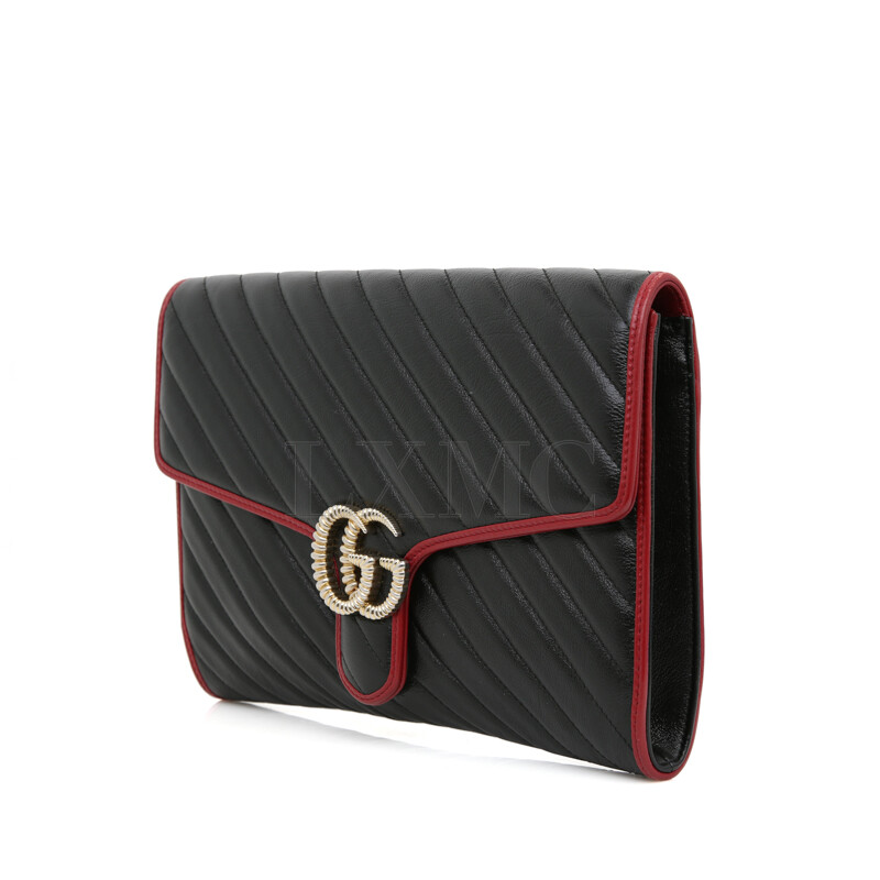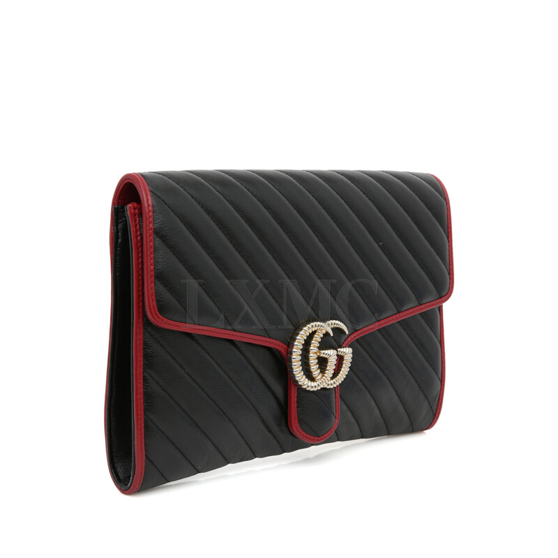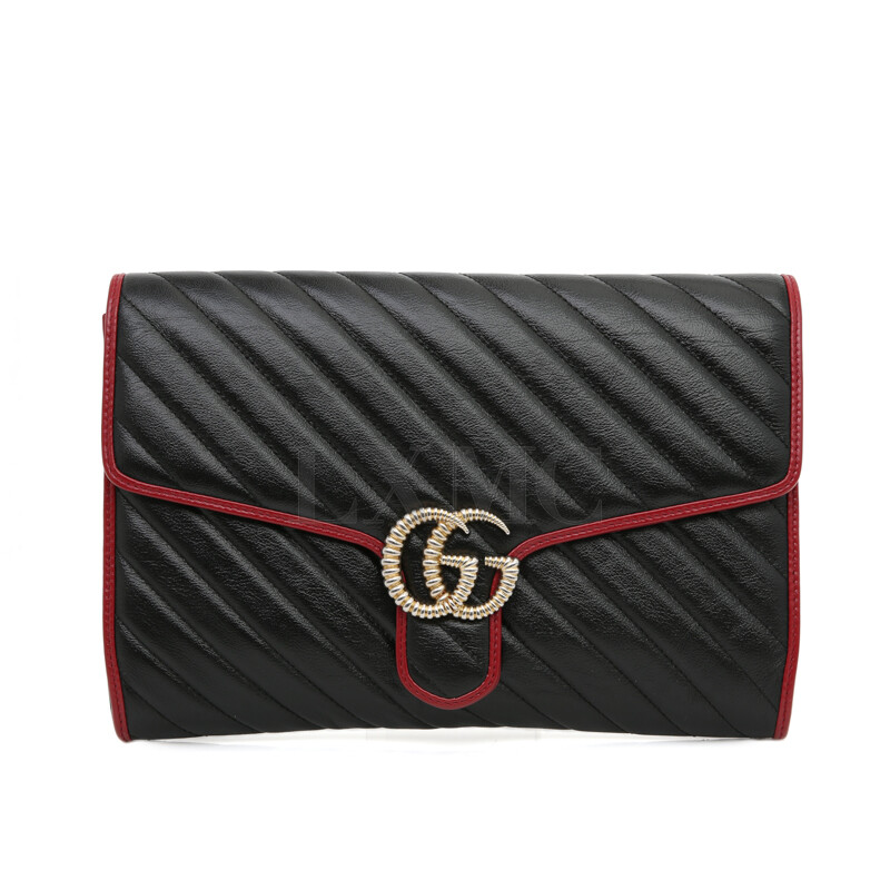구찌 GG 마몽 마몬트 마틀라세 블랙 투톤 쉐브론 클러치 498079.