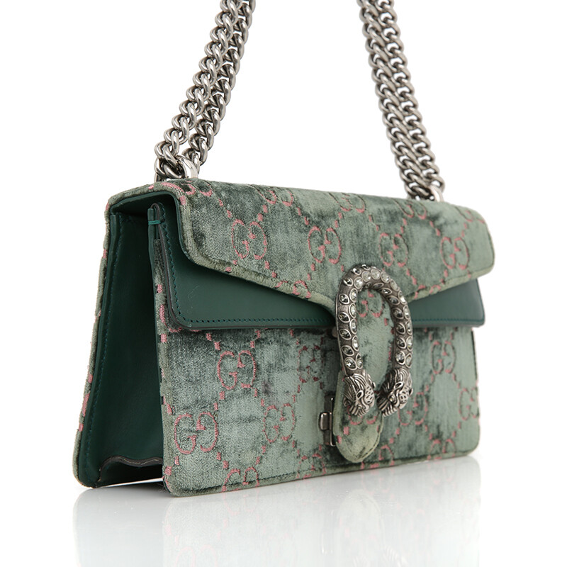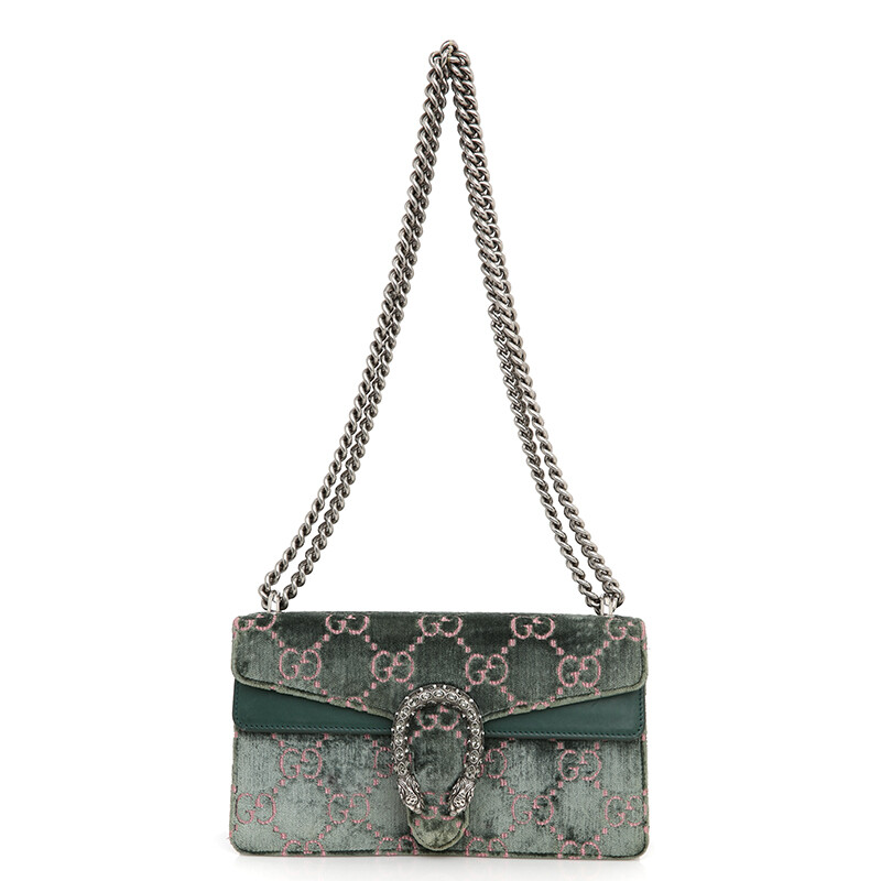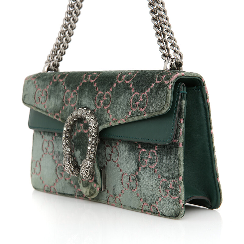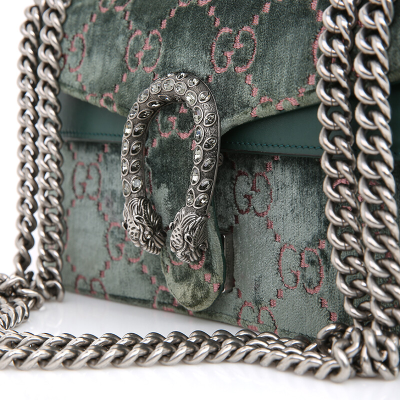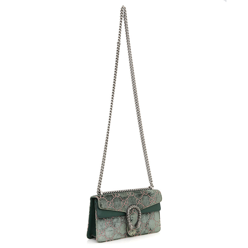 구찌 디오니서스 스몰 GG 핸드백 499623 벨벳 핑크 그린 체인 크로스.