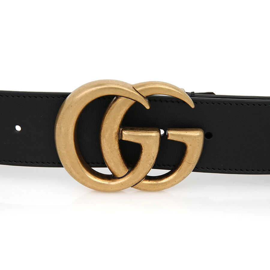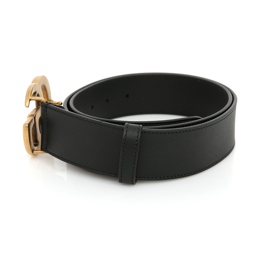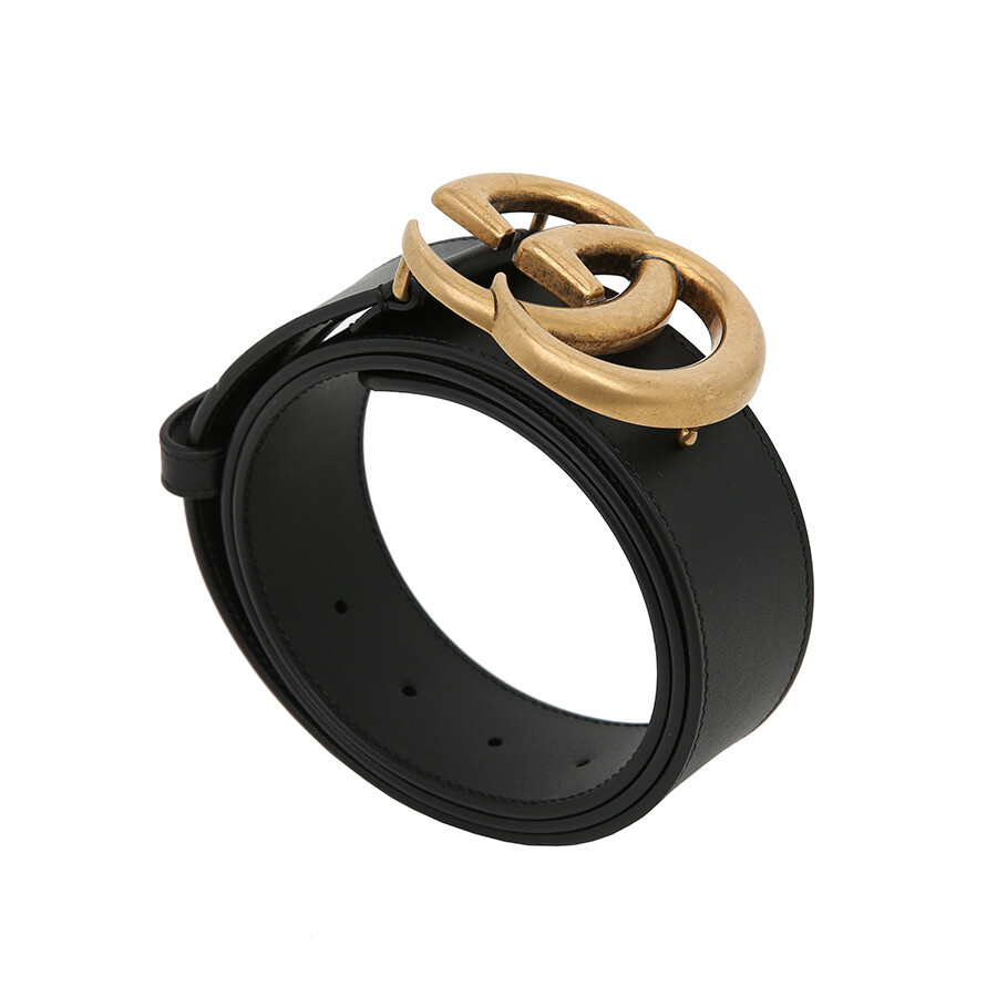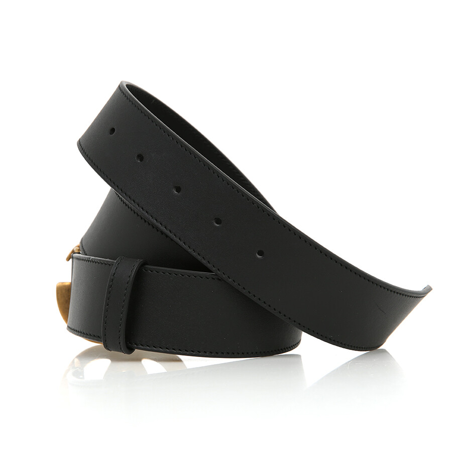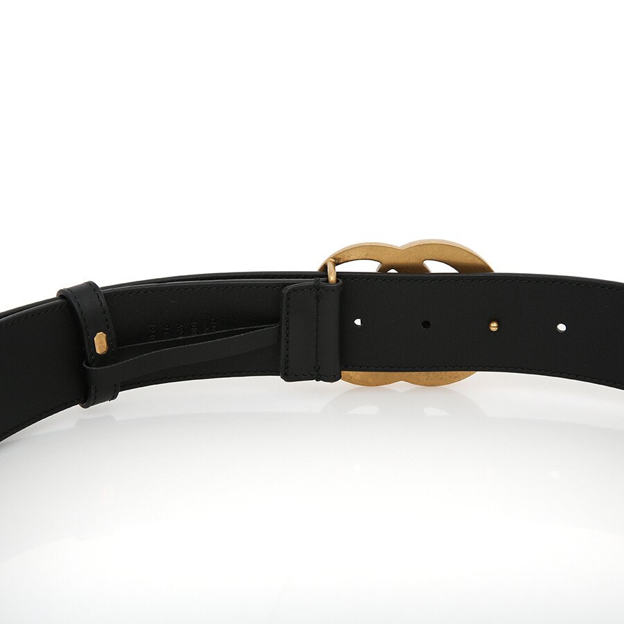 구찌 GG 마몽 2015 리에디션 와이드 레더 벨트 블랙 금장 GG 로고 400593.
