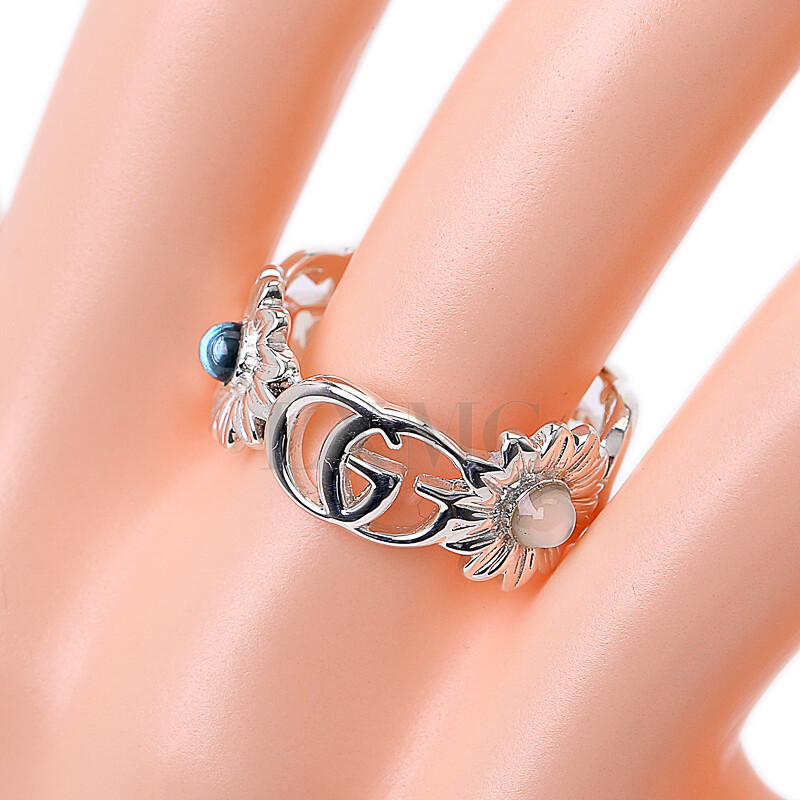 구찌 스털링 실버 더블 G 자개 반지 플라워 실버링 527394 14호.