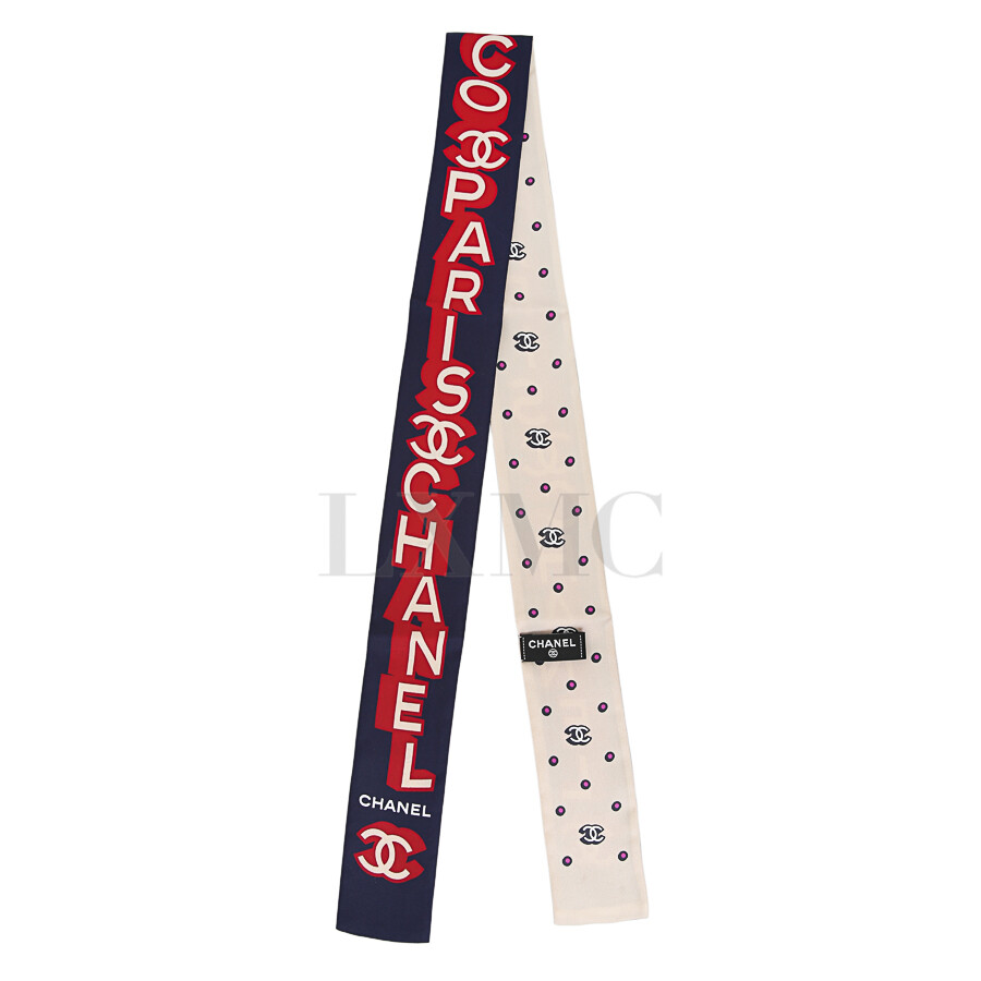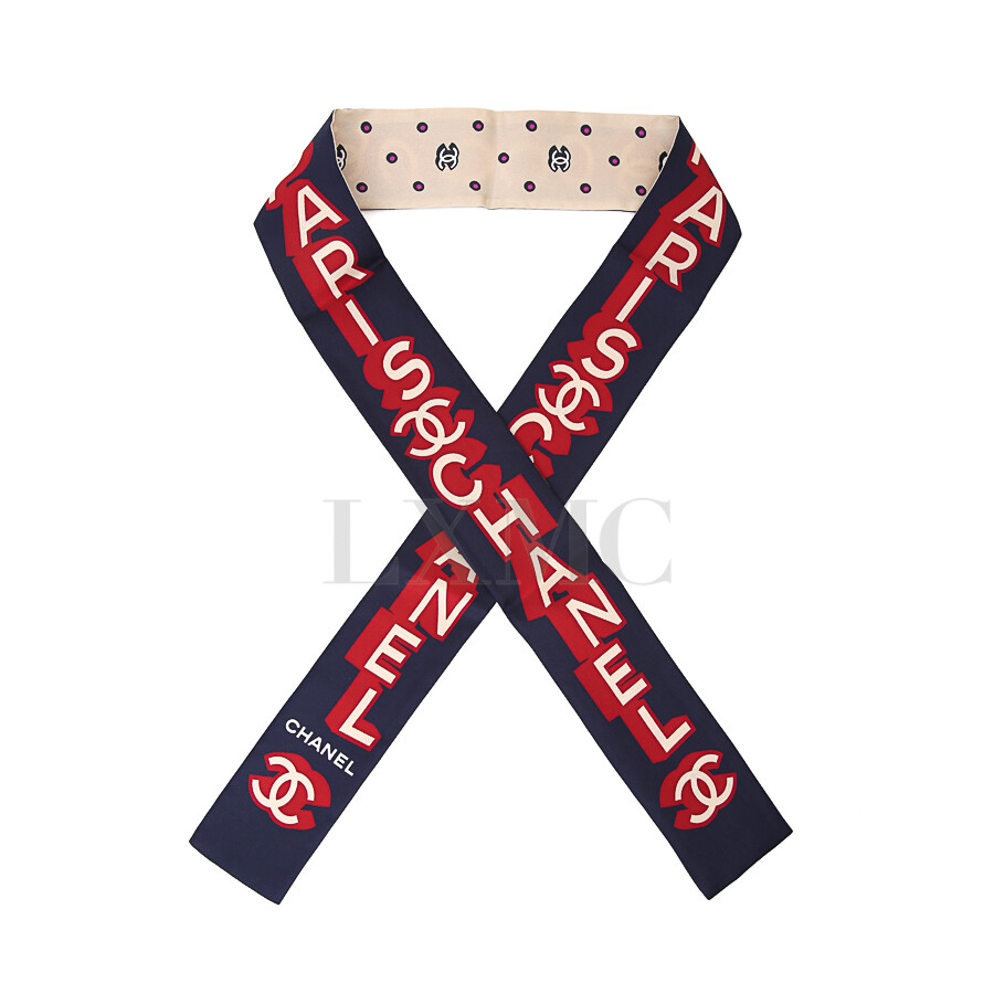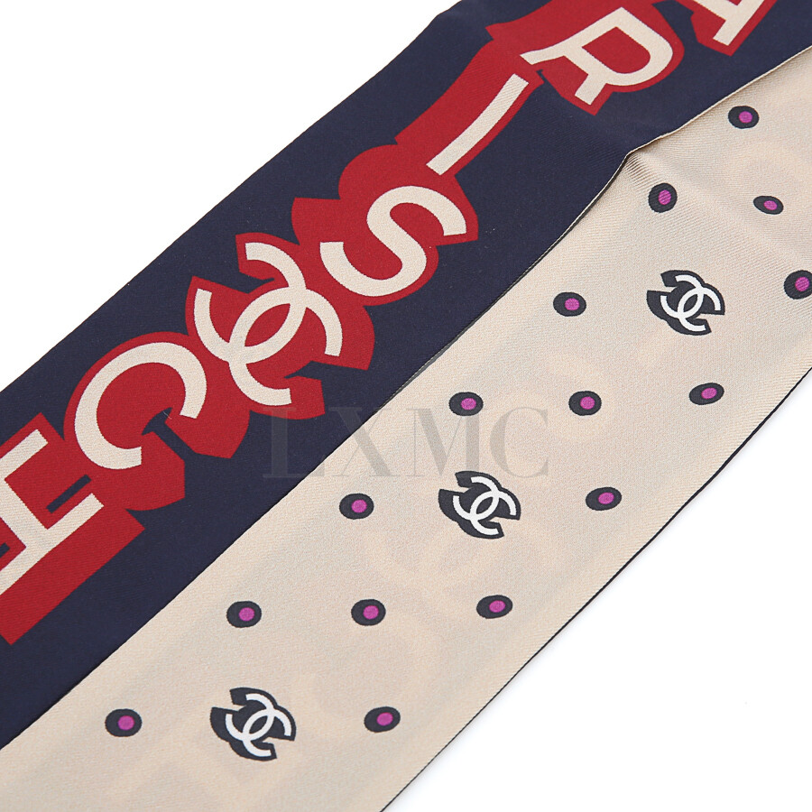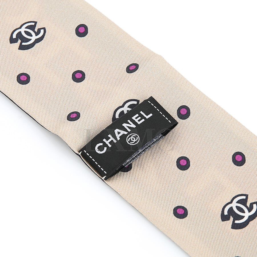 샤넬 클래식 스카프 방도 반다나 실크 헤어밴드 머플러 CC 로고.