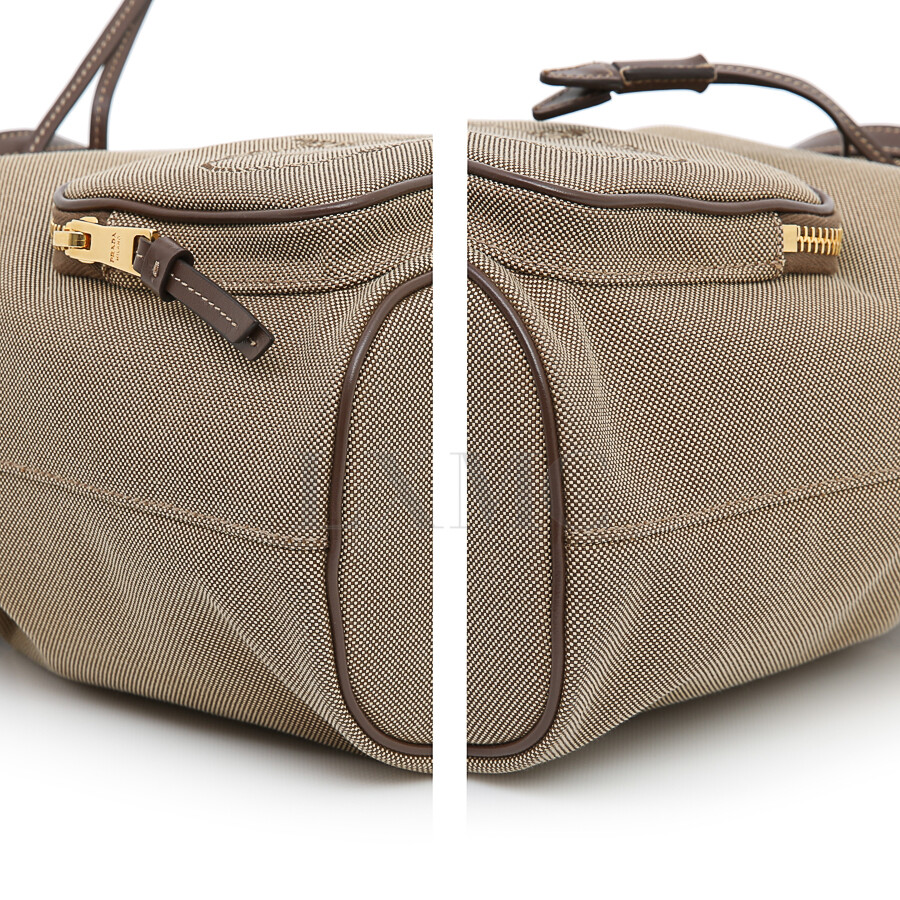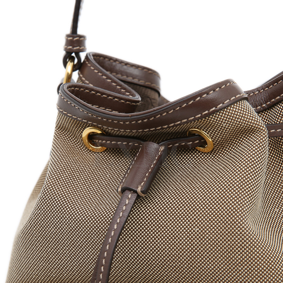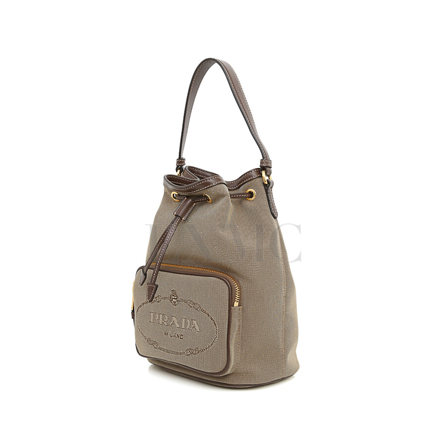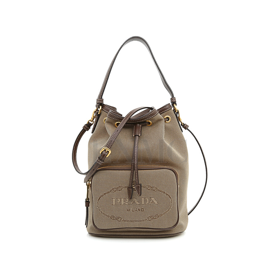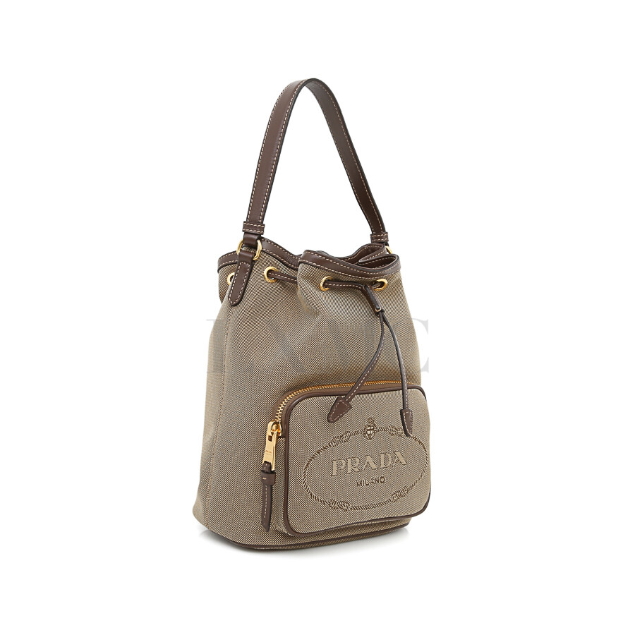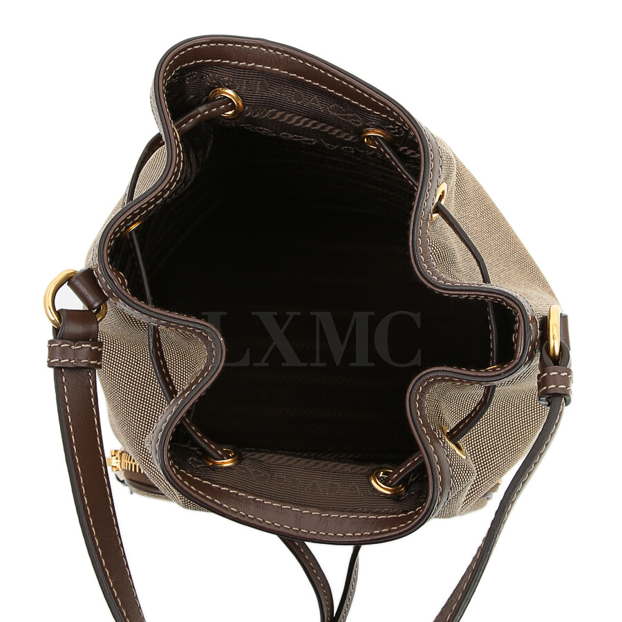 프라다 자카드 페브릭 미니 1BH038 베이지 버켓백 버킷 크로스.