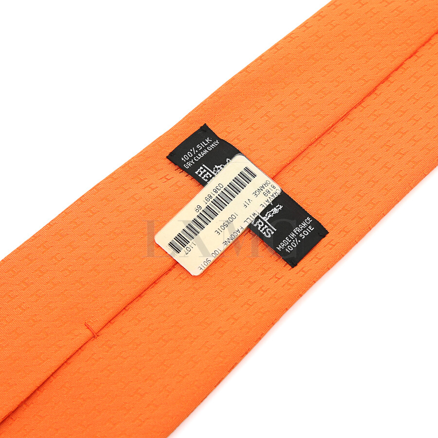 에르메스 H 로고 넥타이 오렌지 컬러 남자타이 TIE Faconnee 트윌.