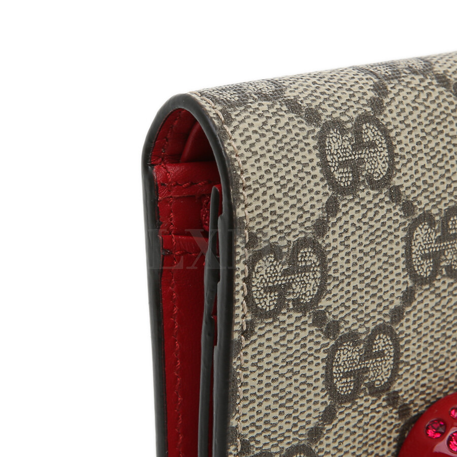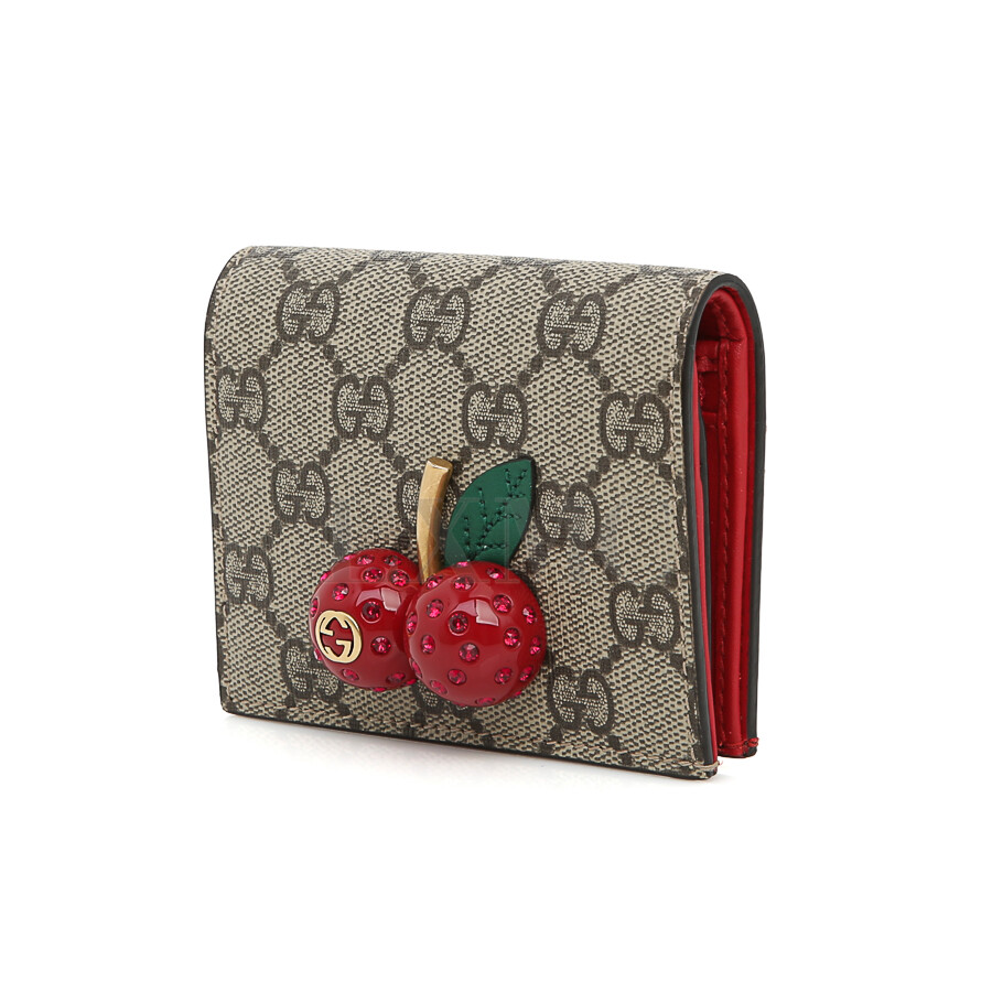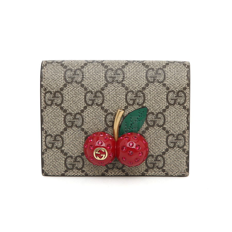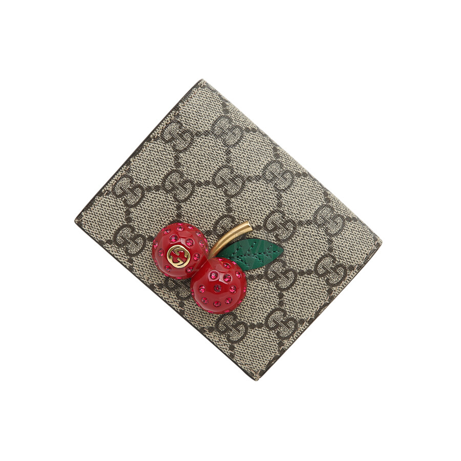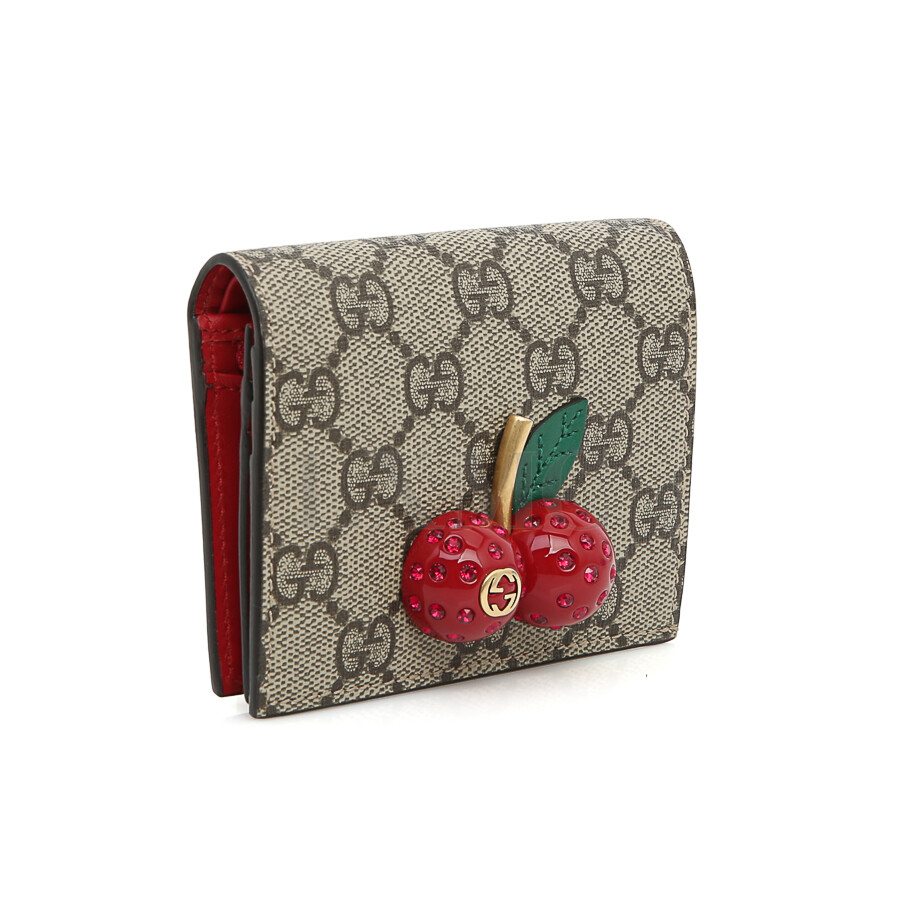 구찌 GG 수프림 캔버스 체리 장식 카드 케이스 지갑 476050.