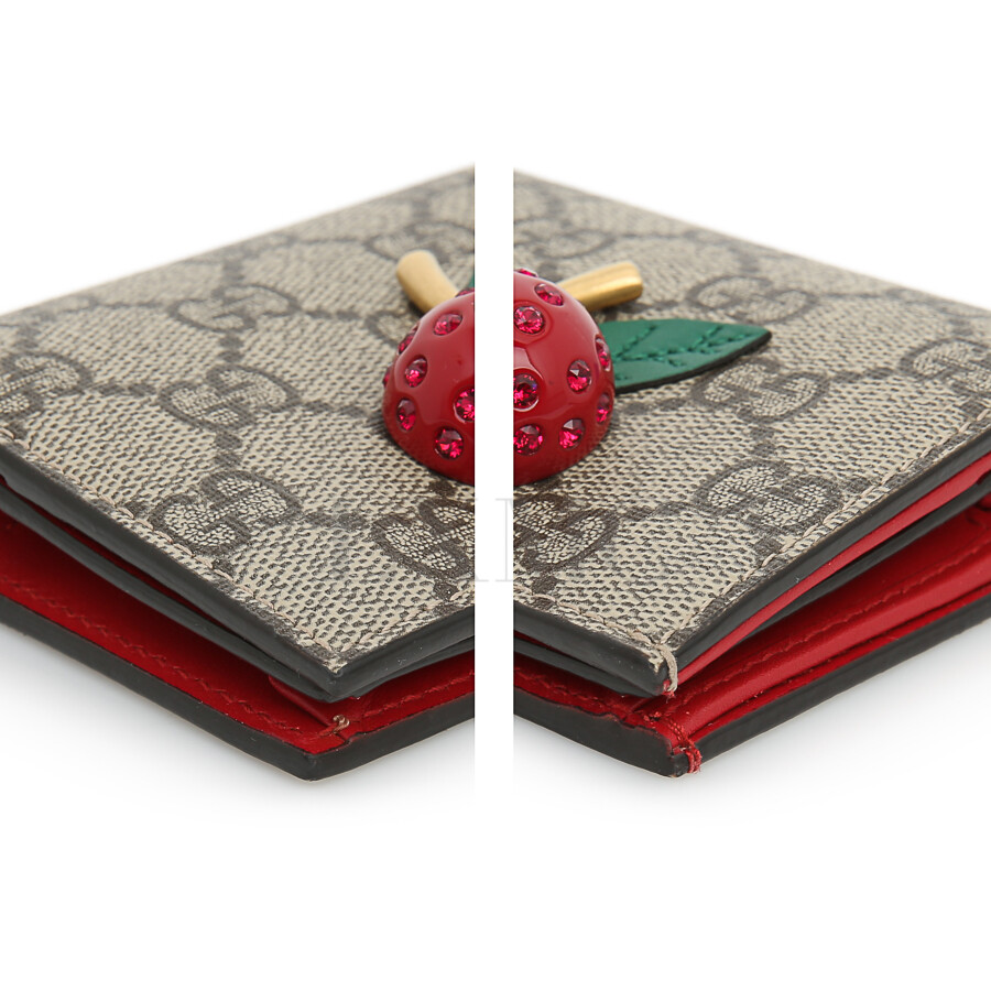 구찌 GG 수프림 캔버스 체리 장식 카드 케이스 지갑 476050.