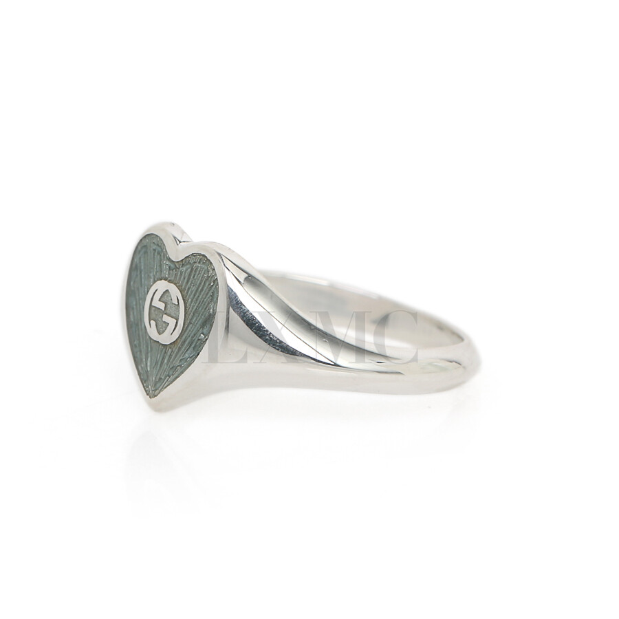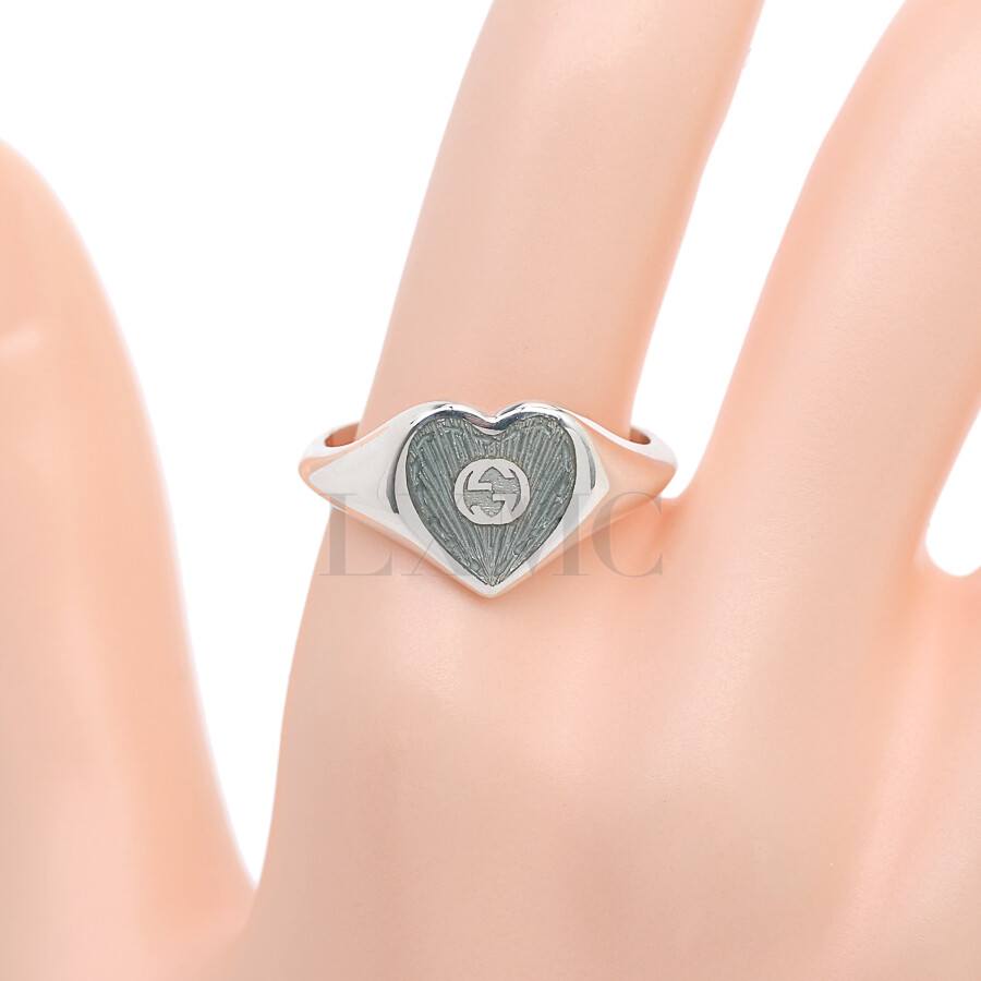 구찌 에나멜 하트 블루 인터로킹 반지 645544 실버링 14호.