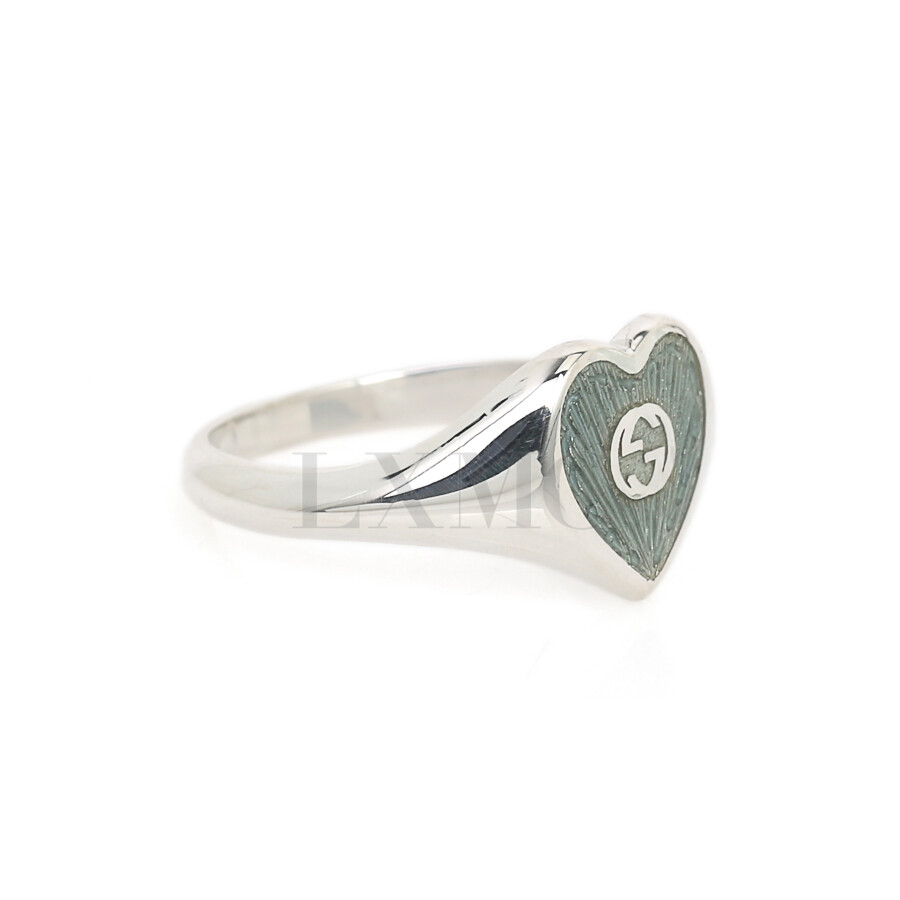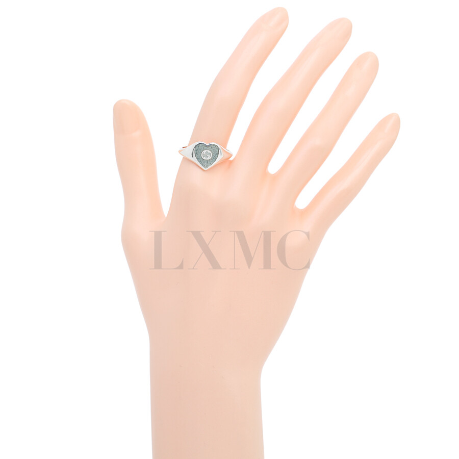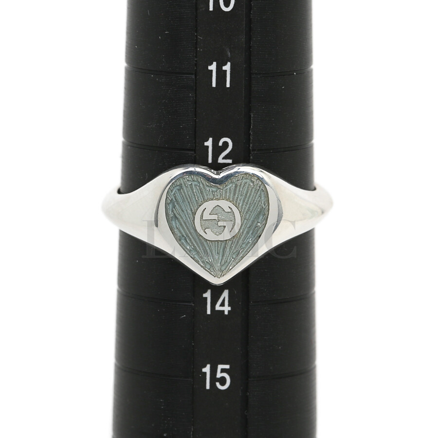 구찌 에나멜 하트 블루 인터로킹 반지 645544 실버링 14호.
