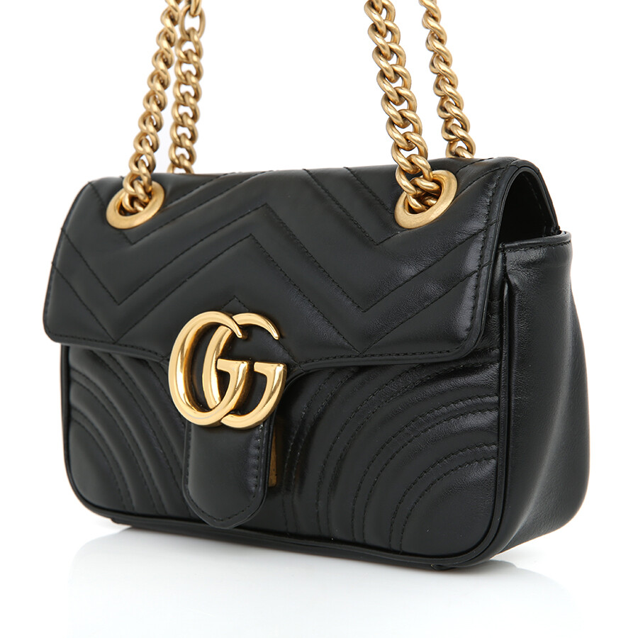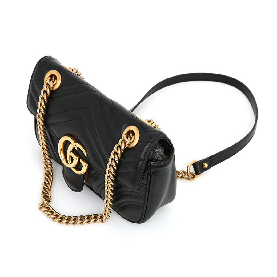 구찌 클래식 블랙 금장 GG 마몽 마틀라세 미니백 체인 크로스 446744.