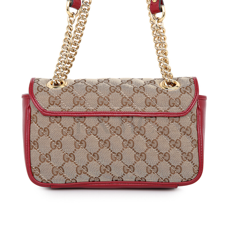 구찌 GG 수프림 마몽 마몬트 레드 골드 체인 숄더 크로스백 446744.