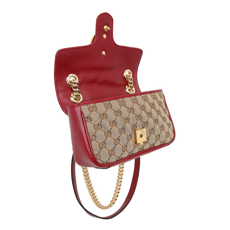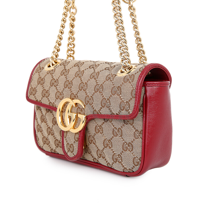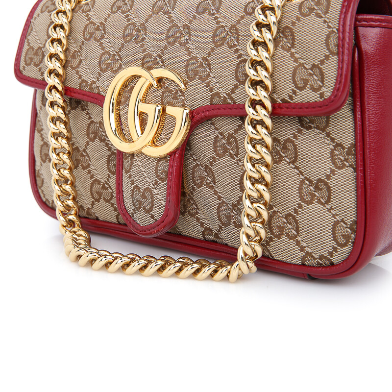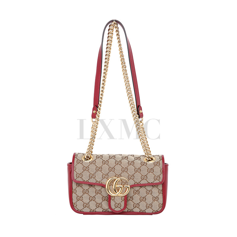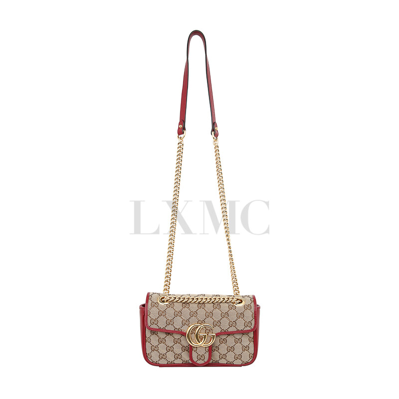 구찌 GG 수프림 마몽 마몬트 레드 골드 체인 숄더 크로스백 446744.