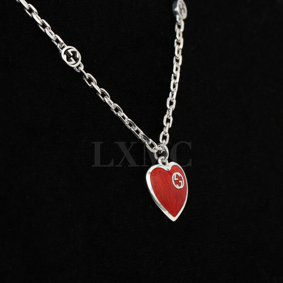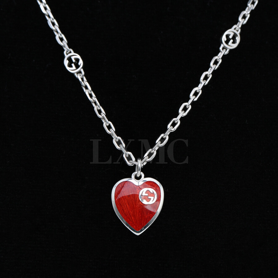 구찌 하트 인터로킹 G 목걸이 실버 네크리스 645545.