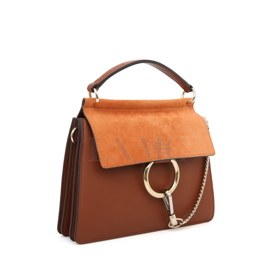 끌로에 스무스 앤 스웨이드 카프스킨 페이 스몰 탑핸들 토바코 크로스.
