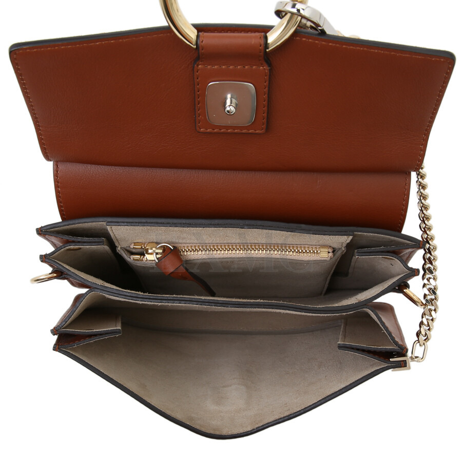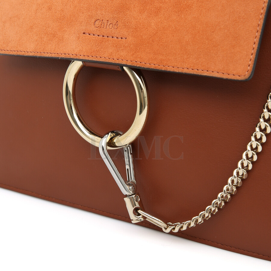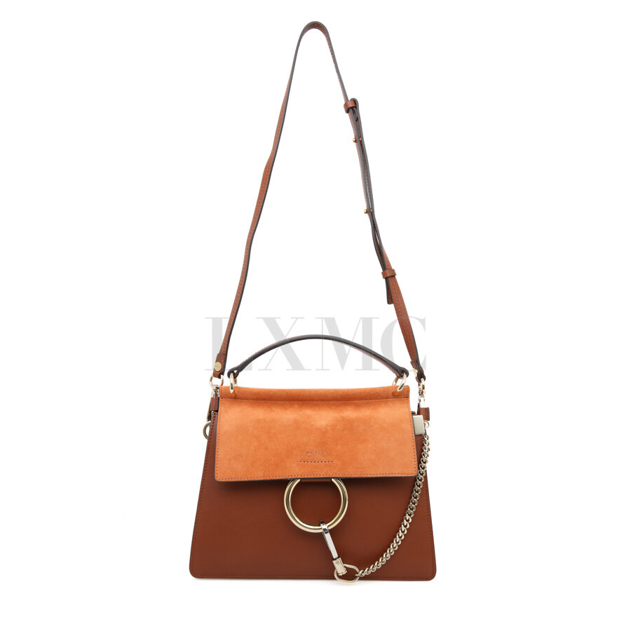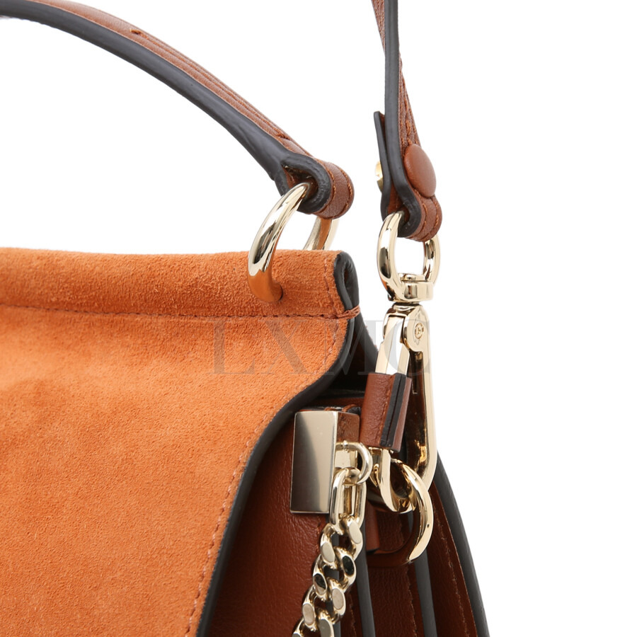 끌로에 스무스 앤 스웨이드 카프스킨 페이 스몰 탑핸들 토바코 크로스.
