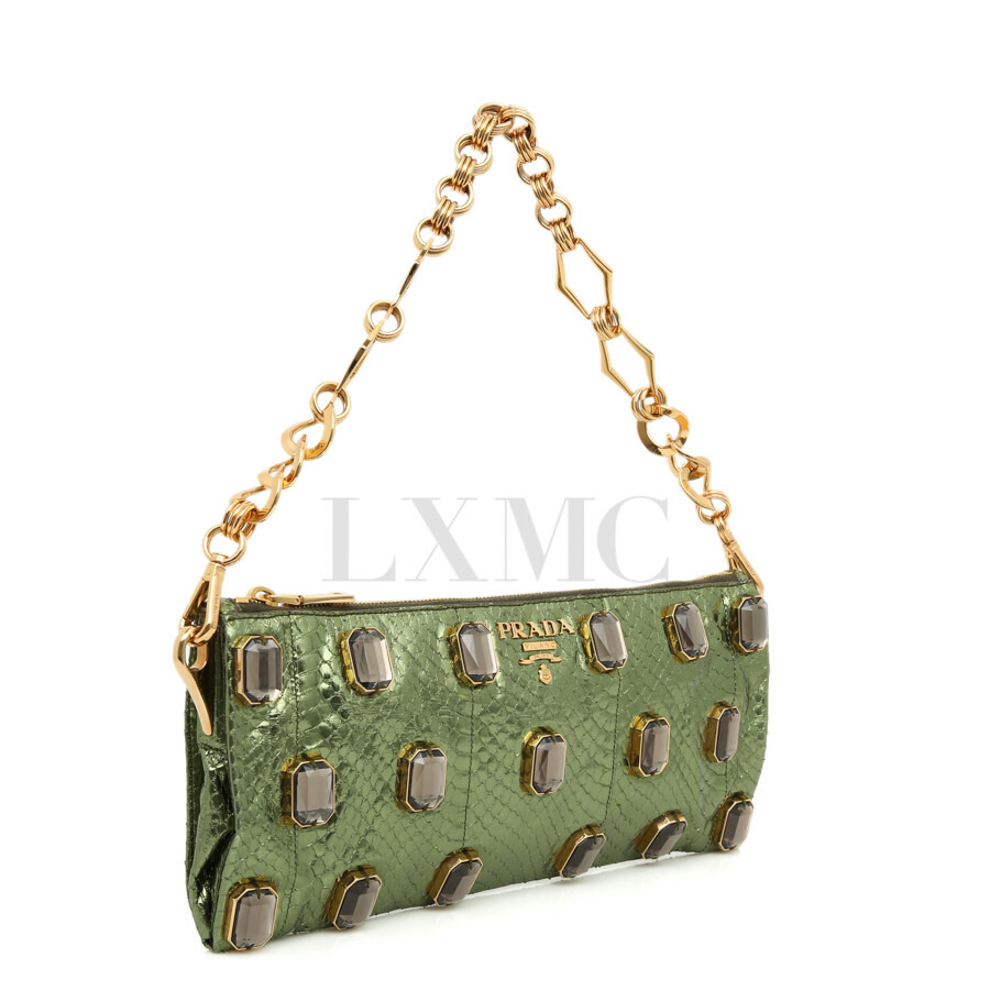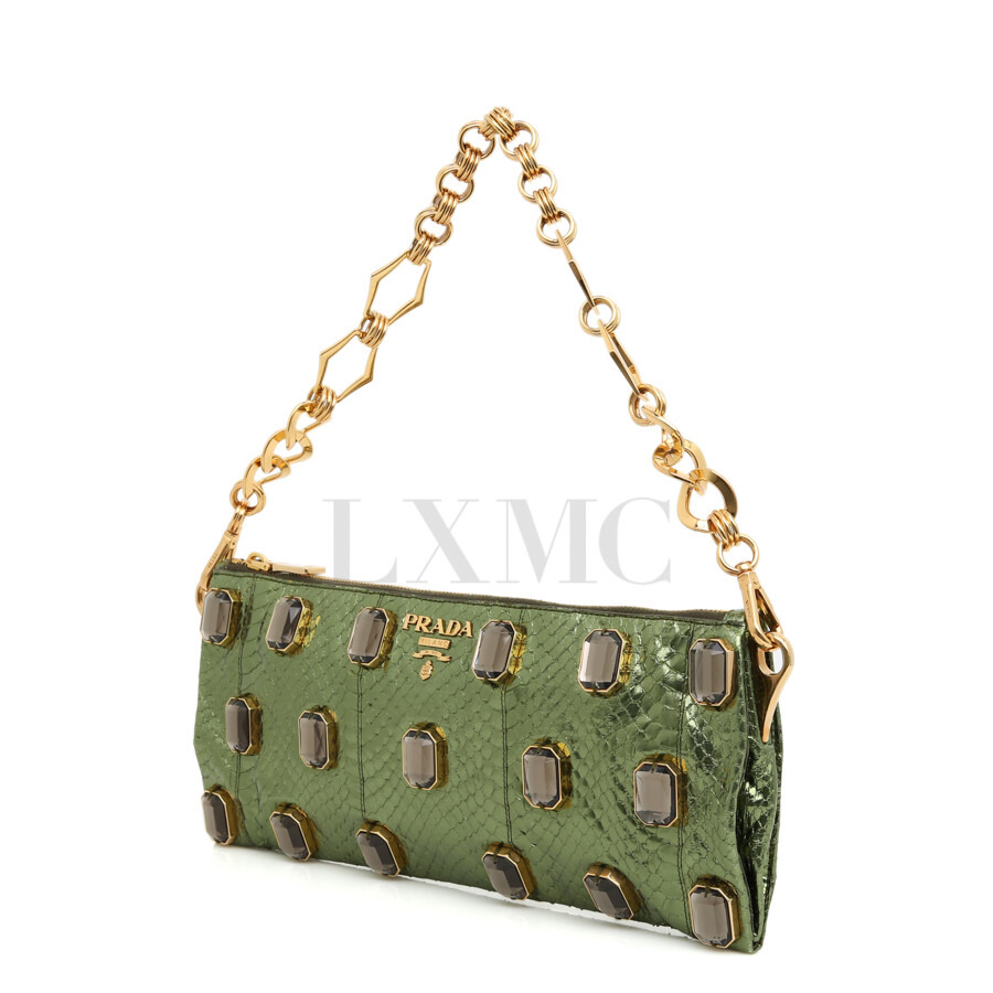 프라다 리미티드 파이톤 스네이크 큐빅 체인 숄더 파티백 BP0250 클러치.