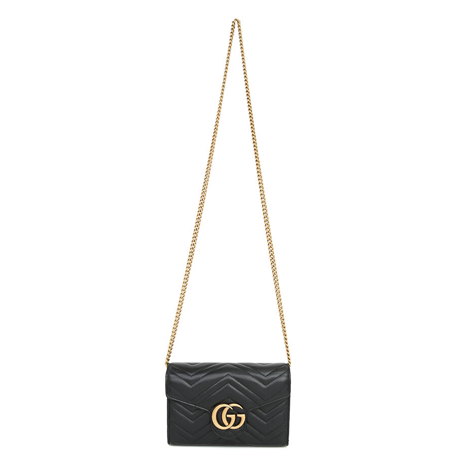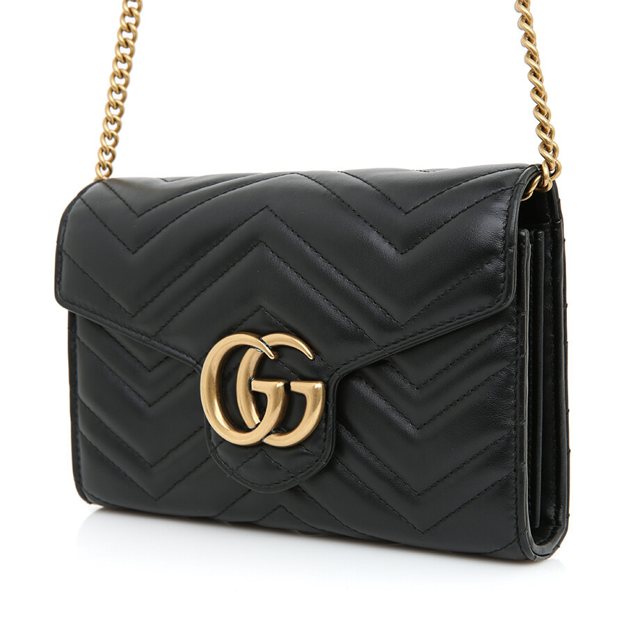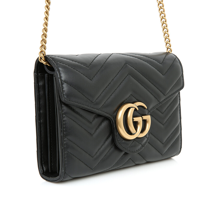 구찌 GG 마몽 마틀라세 미니백 474575 블랙 금장 WOC 체인백.