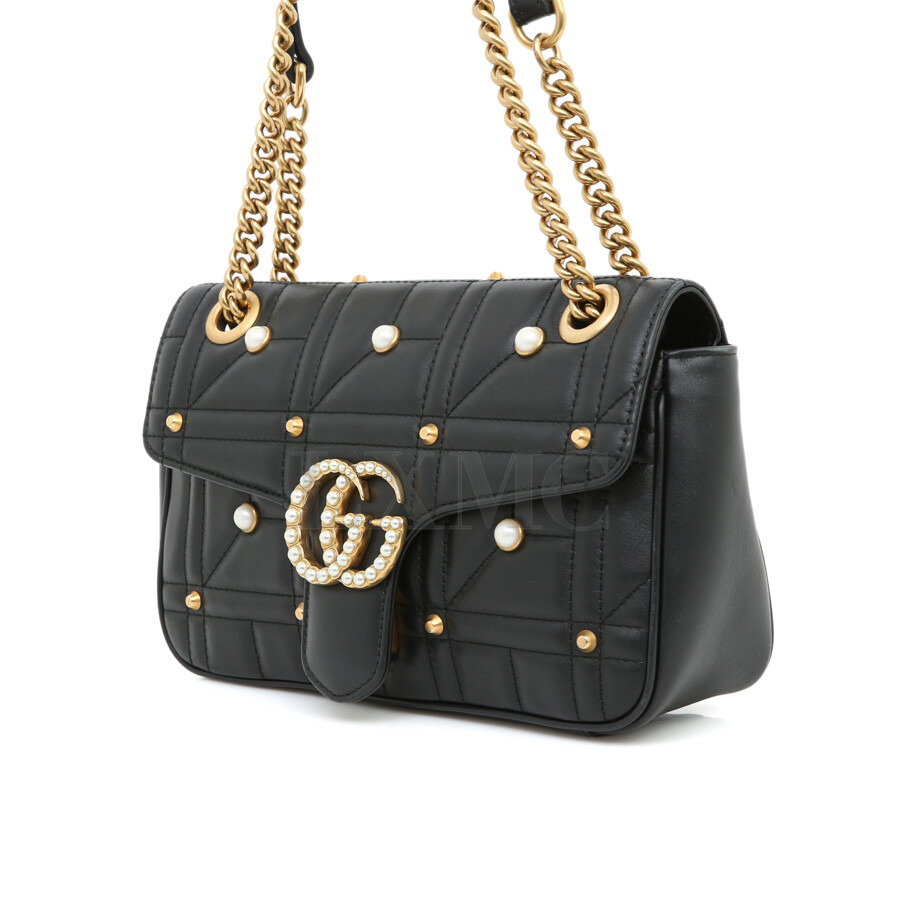 구찌 GG 마몬트 마틀라세 진주 체인 숄더백 443497