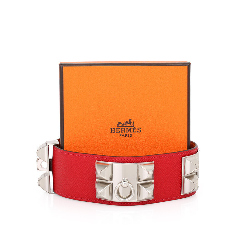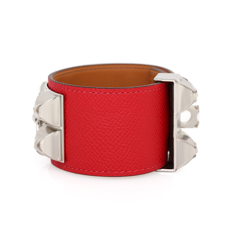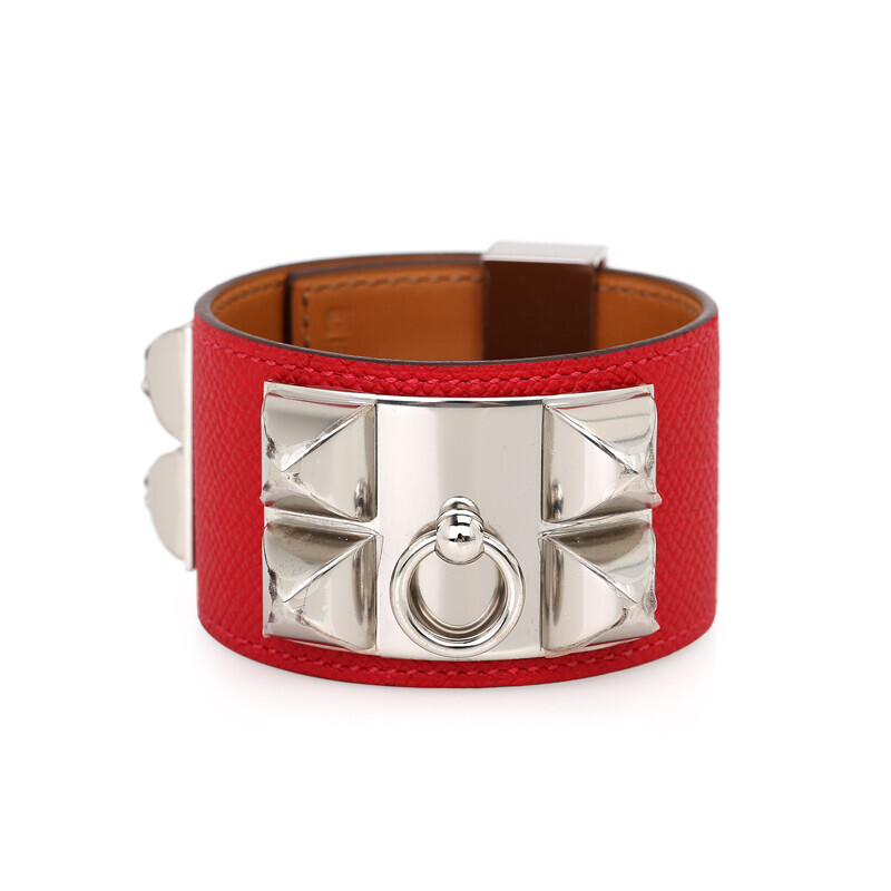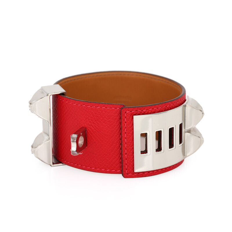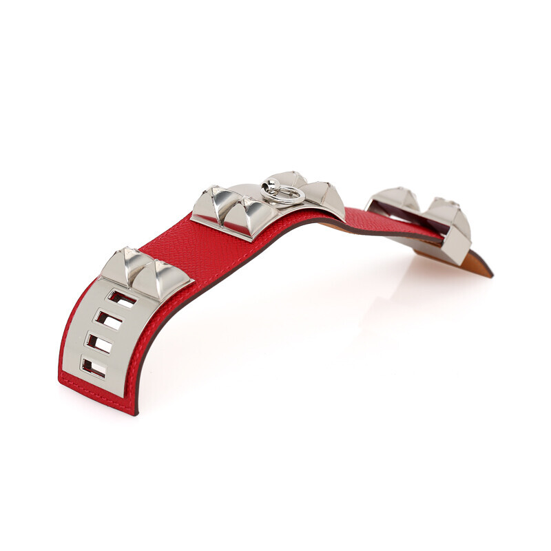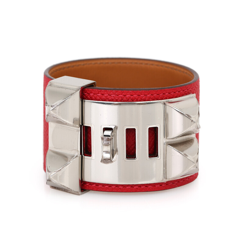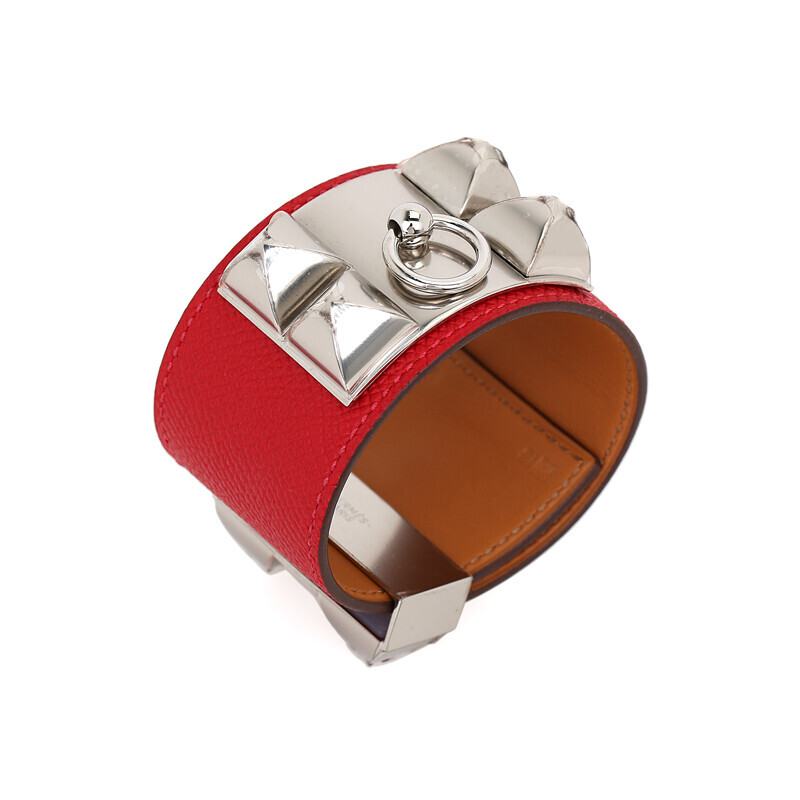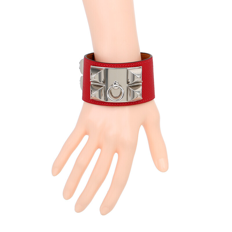 에르메스 클래식 메도르 팔찌 브레이슬릿 가죽팔찌 레드 은장 실버.