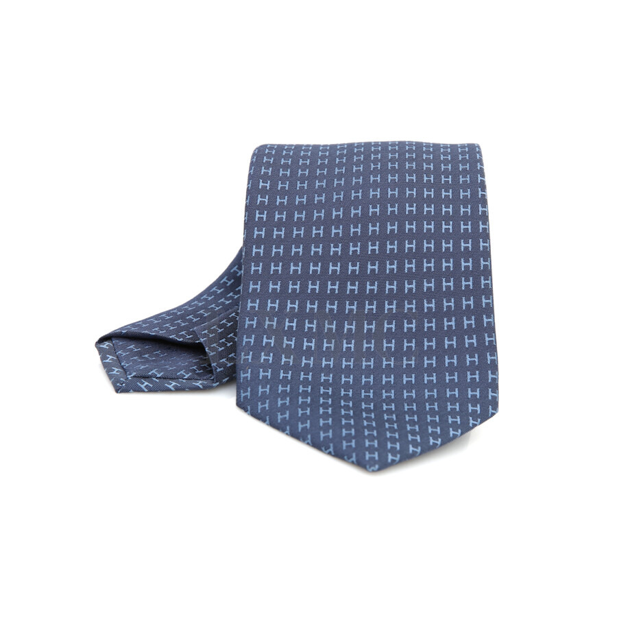 에르메스 H 로고 넥타이 마린블루 컬러 남자타이 TIE Faconnee 트윌