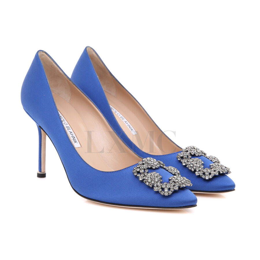 마놀로블라닉 한기시 Hangisi 90 임벨리시드 새틴 펌프스.