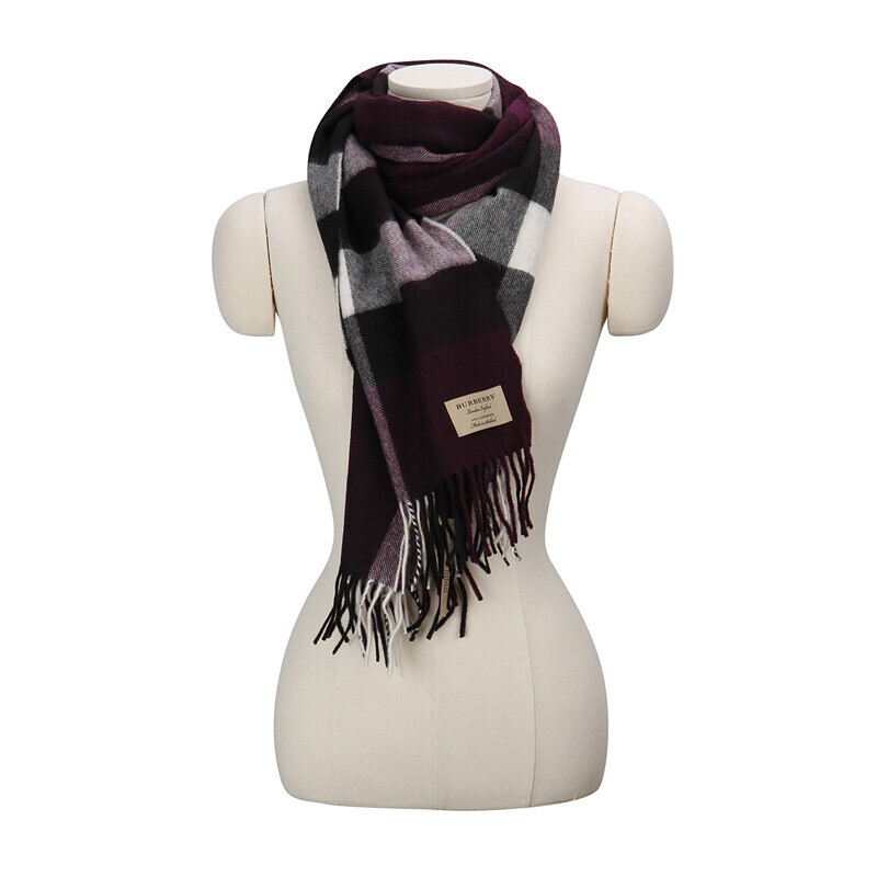 버버리 클래식 캐시미어 남녀공용 머플러 4031046 보라색 체크.
