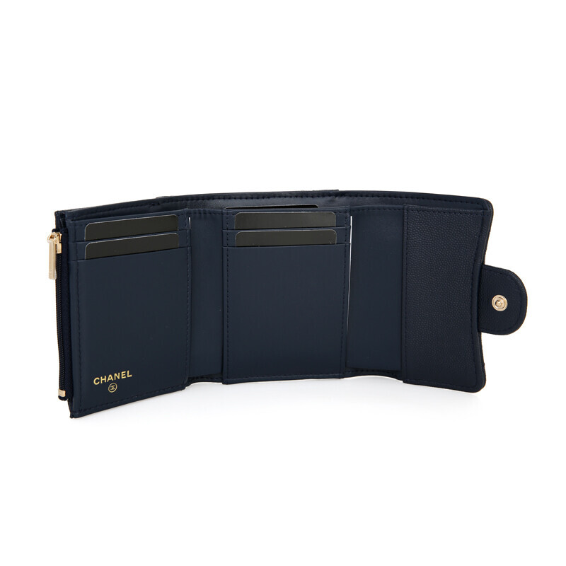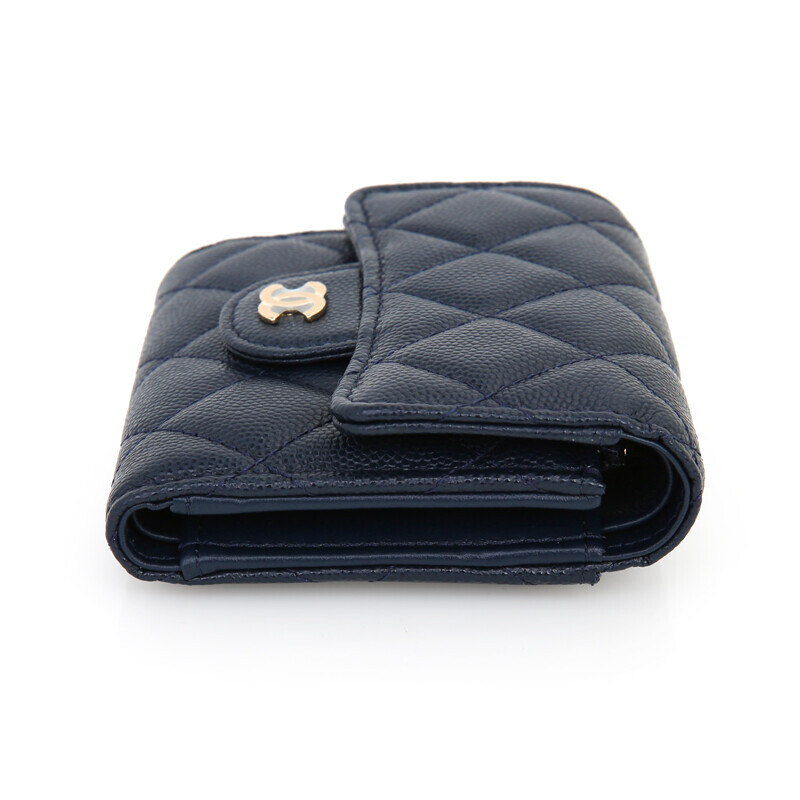 샤넬 클래식 캐비어 지갑 타임리스 금장 네이비 블루 중지갑 샤넬지갑.