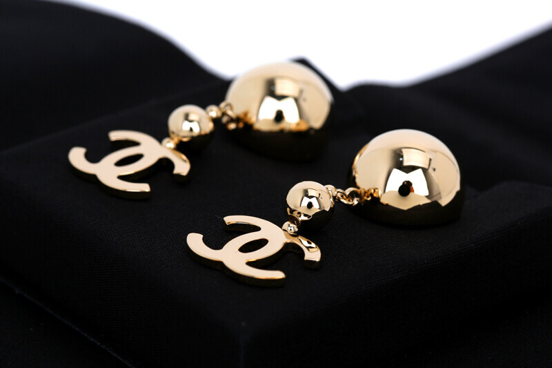 샤넬 CC 로고 볼 이어링 금장 라지 귀걸이