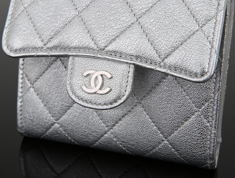 샤넬 메탈릭 실버 미러 반지갑
