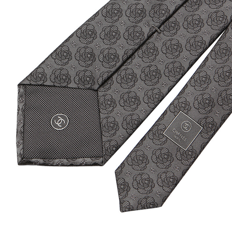 샤넬 넥타이 선물 남자넥타이 TIE CC 까멜리아 로고 실크 그레이.